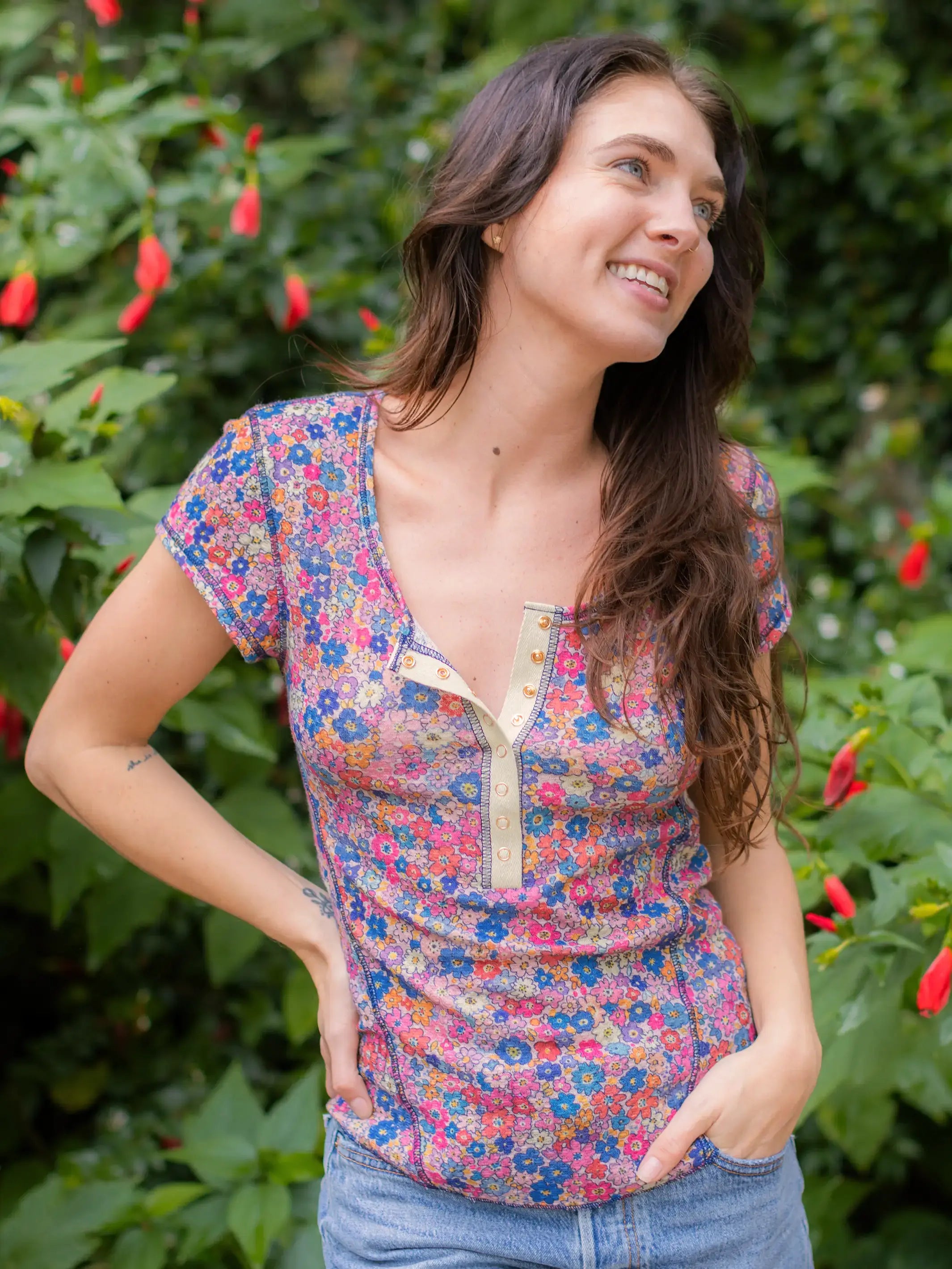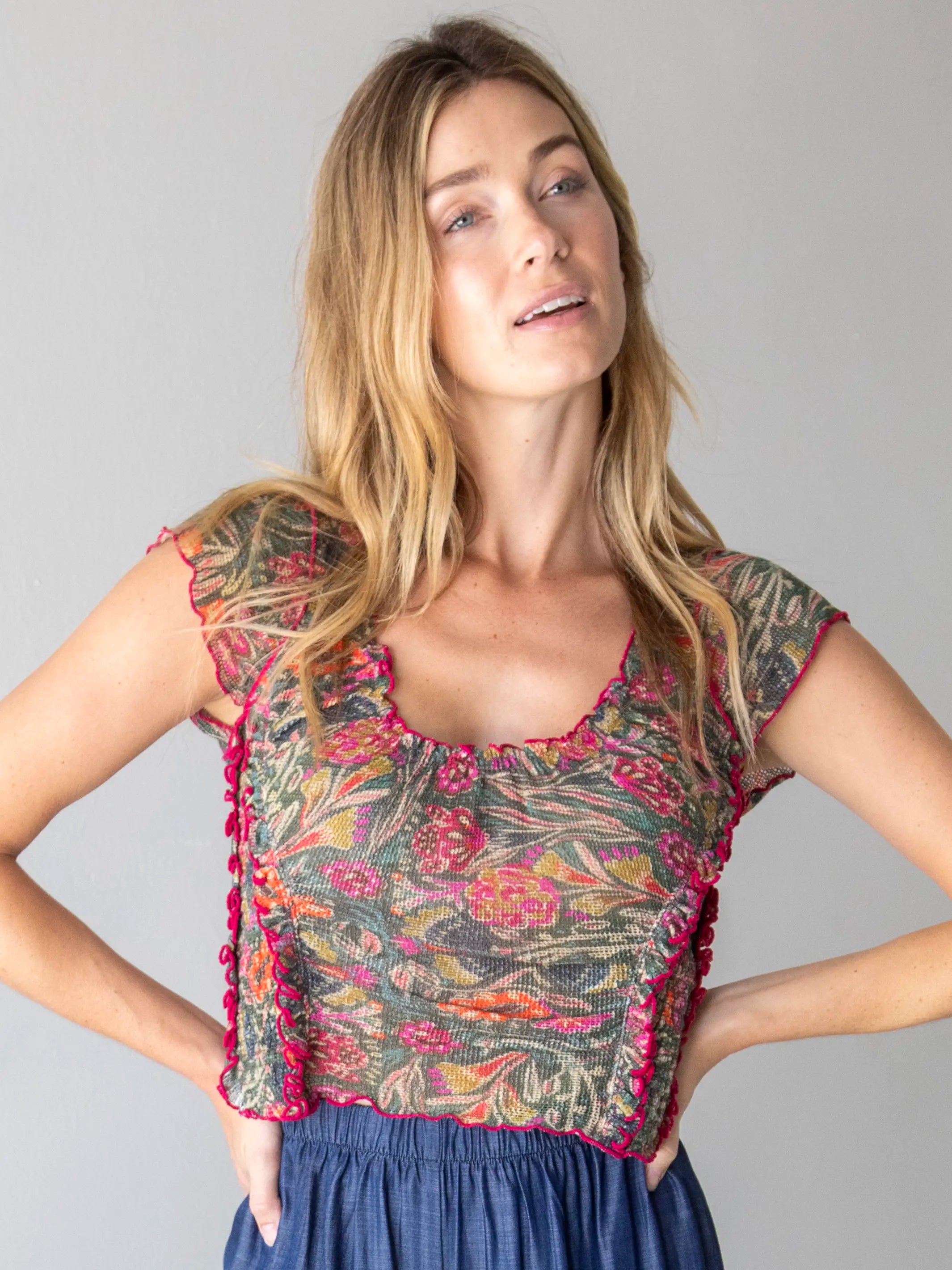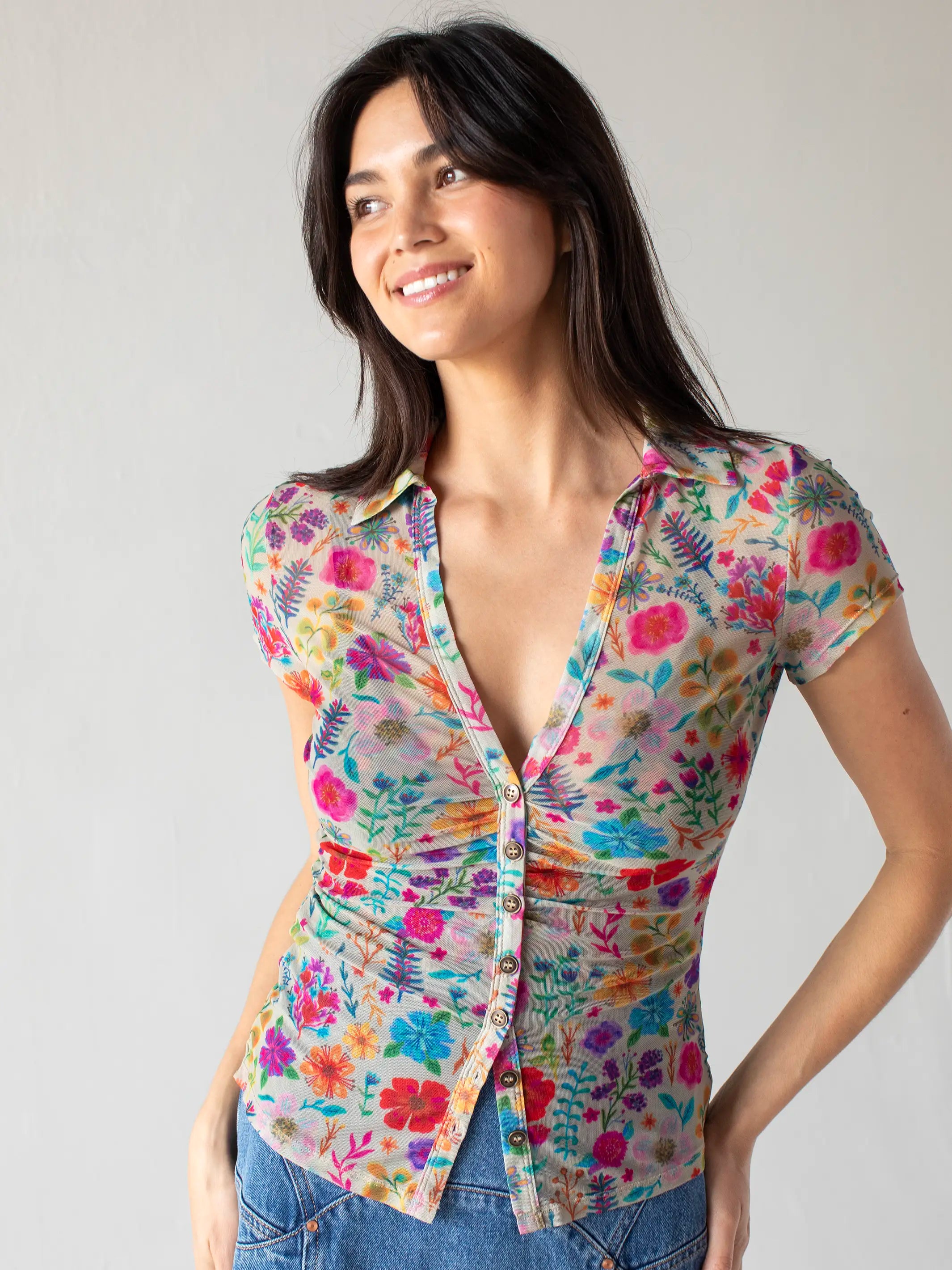 Carina Mesh Short Sleeve Top - Rainbow Garden Cream