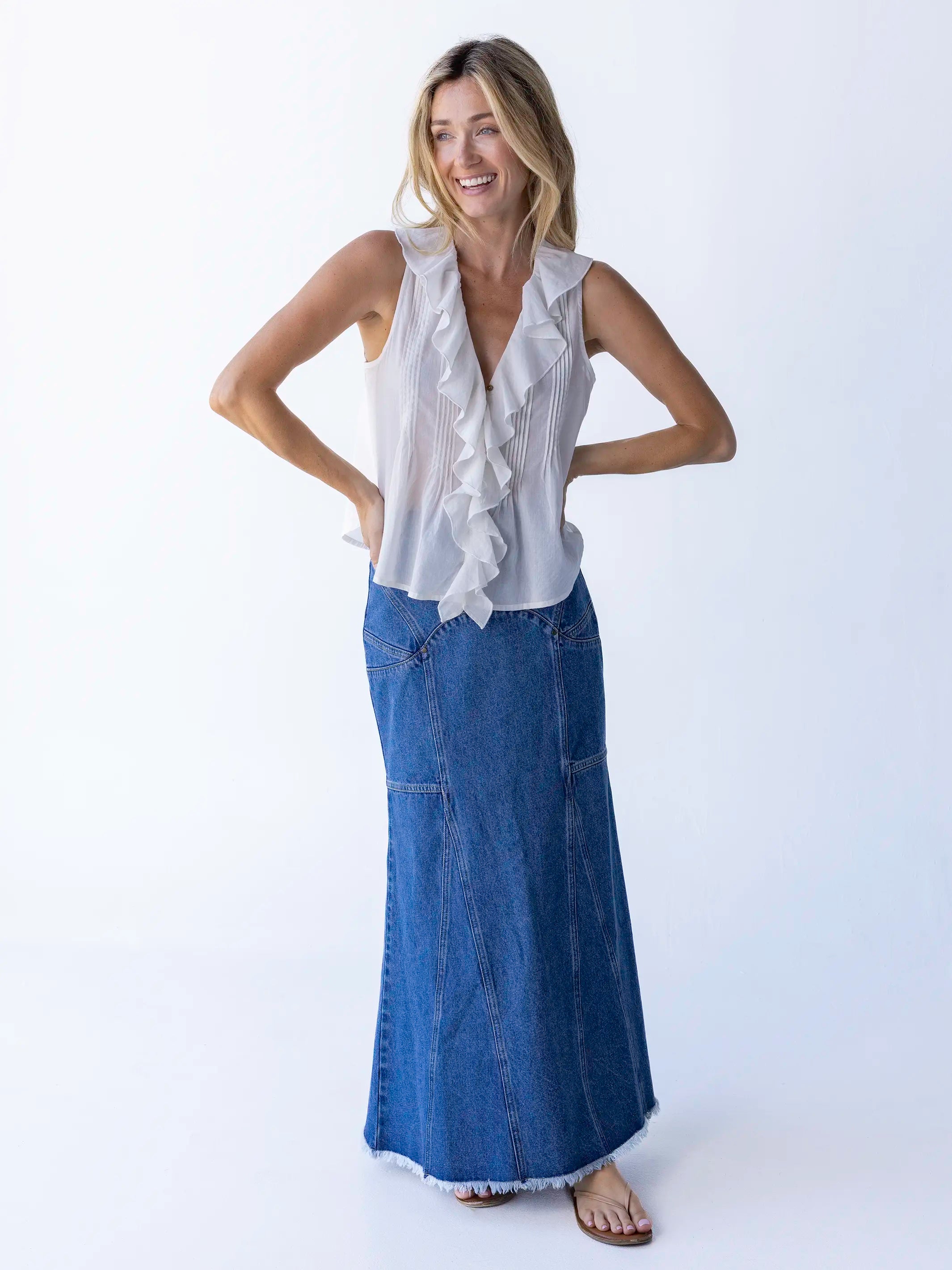 Feelin' Alive Convertible Cotton Midi Skirt - Blue