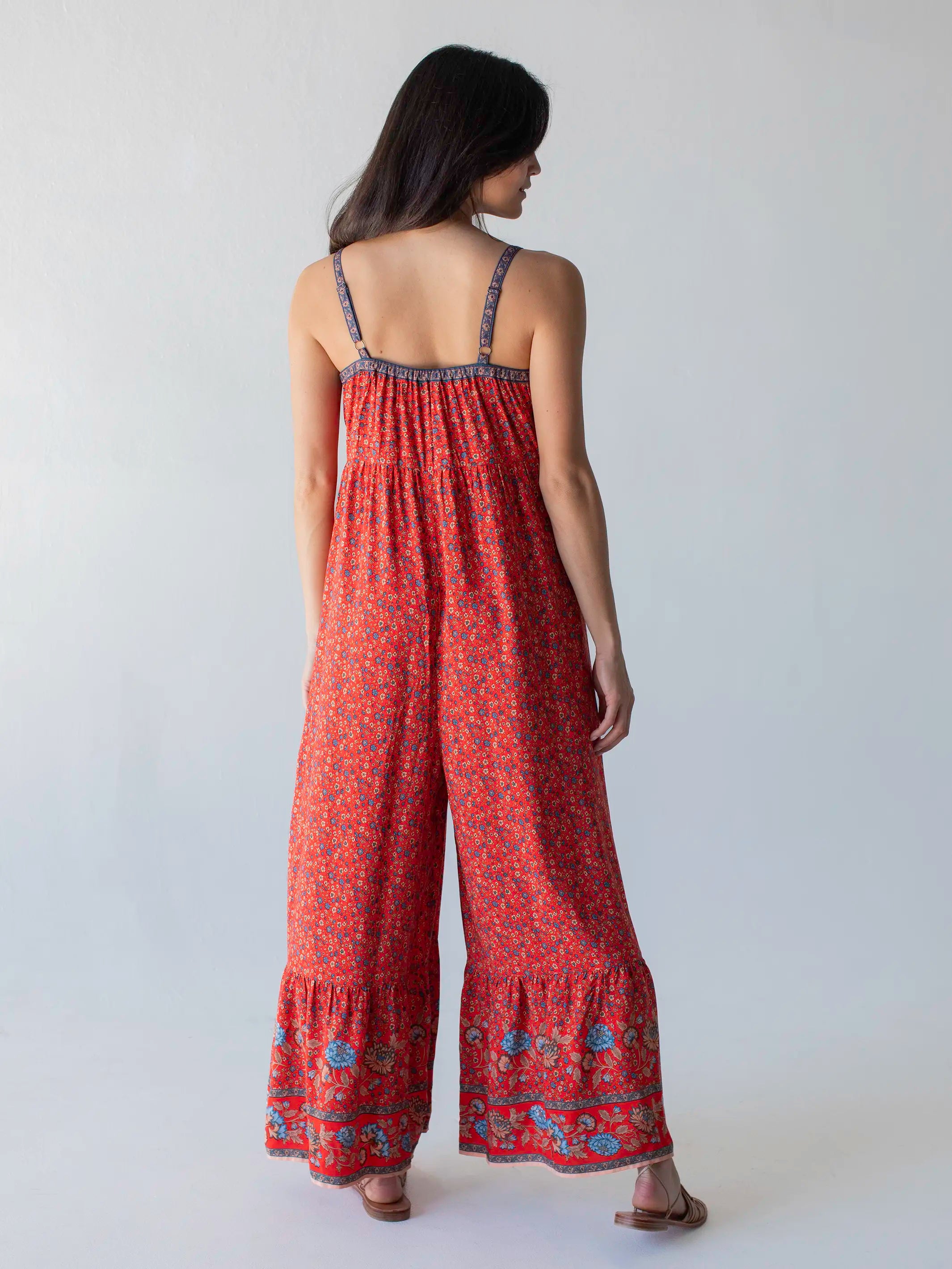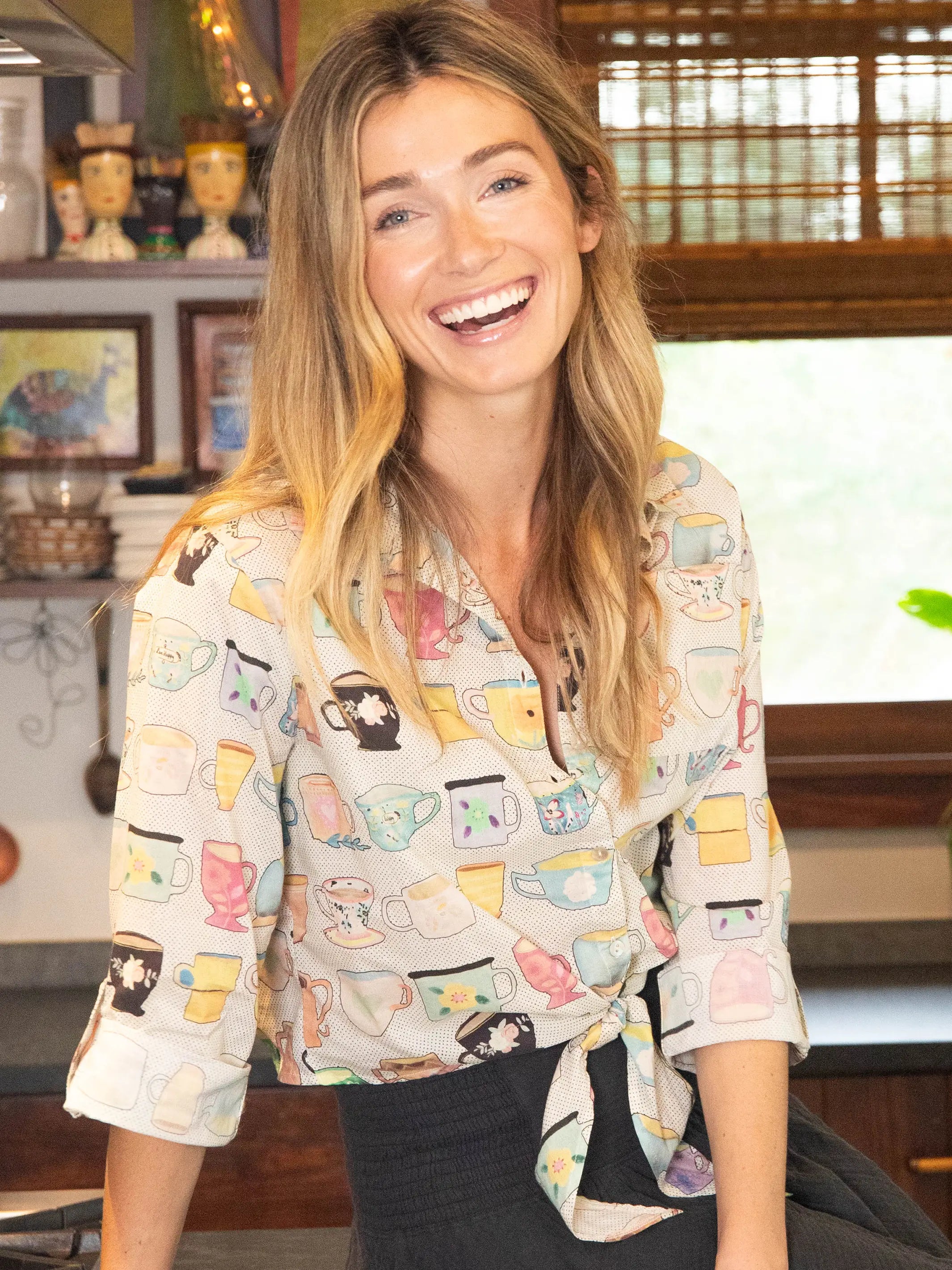 Elisa Ruffle Tie Top - Multicolored Flung Floral