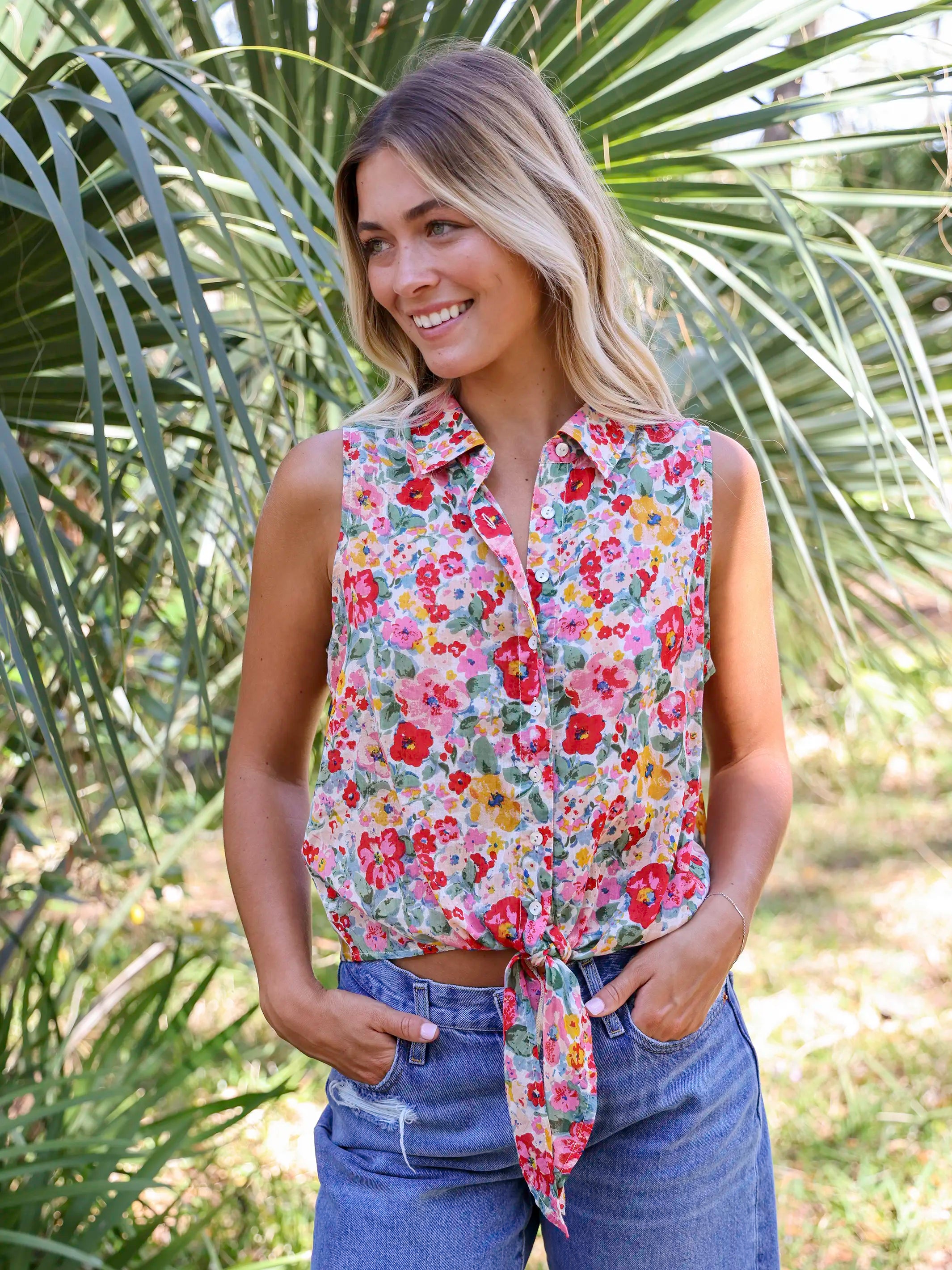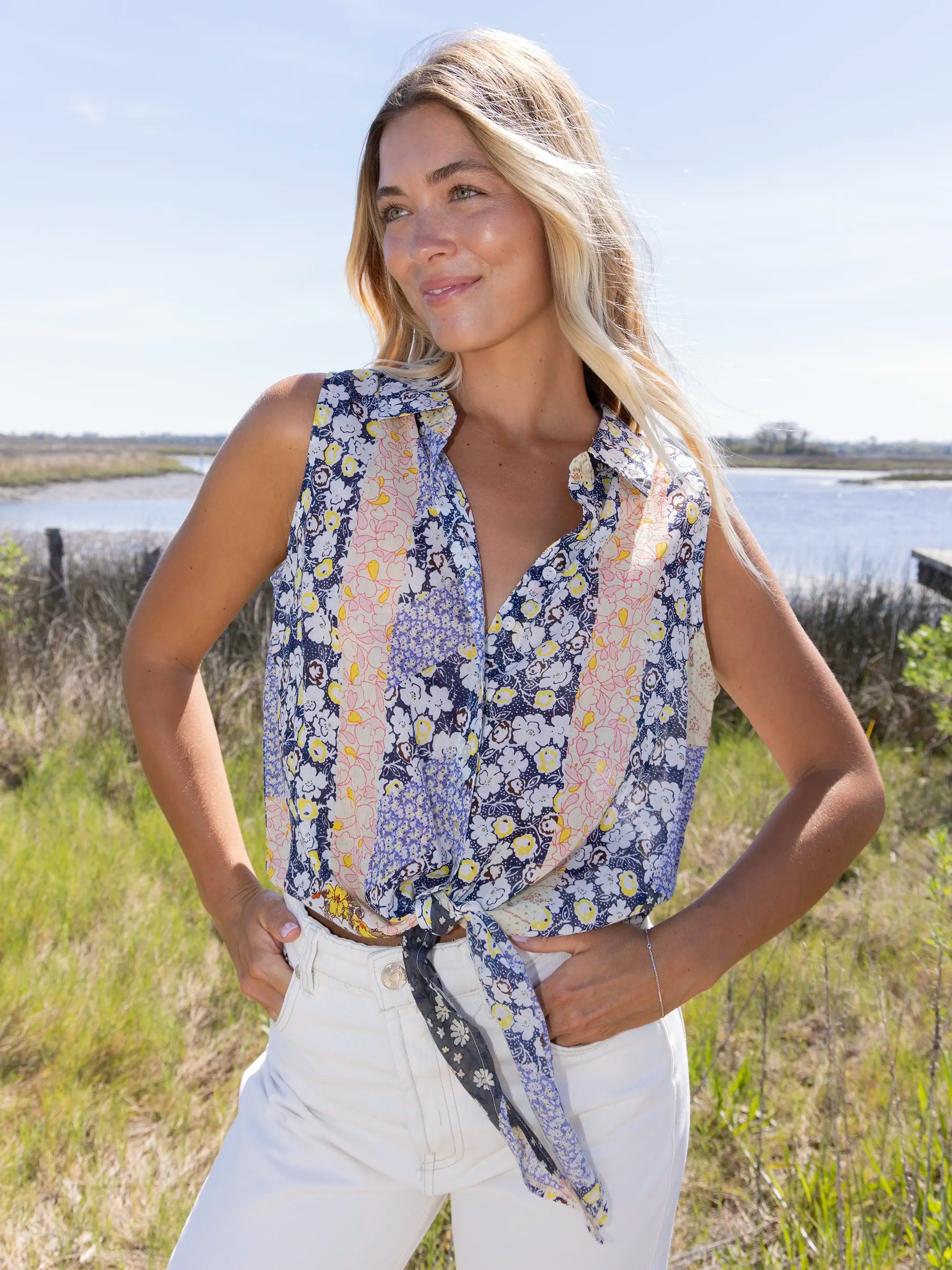 Lola Sleeveless Tie Top - Multi Floral Patchwork