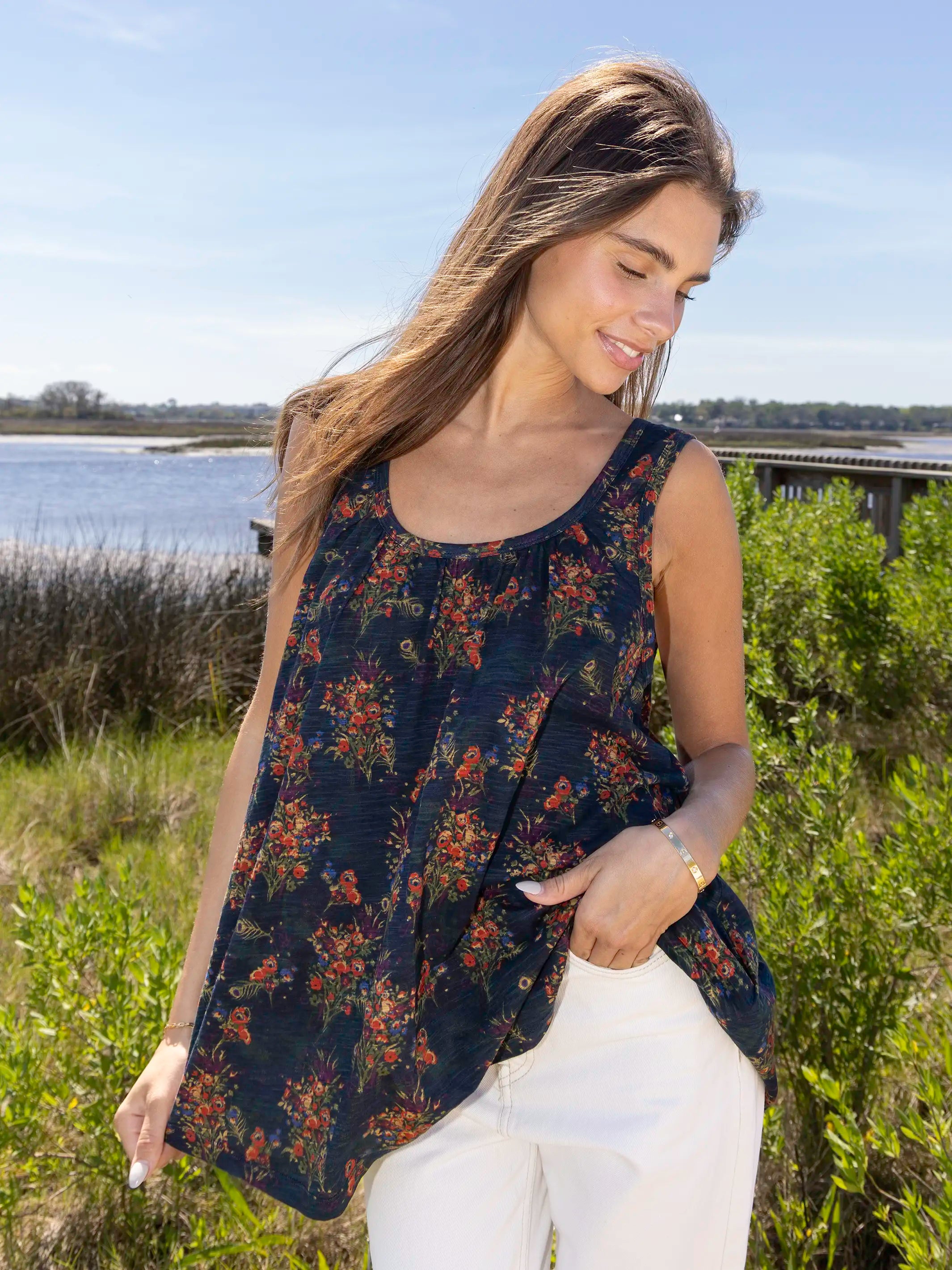 Sierra Sleeveless Mesh Top - Navy Mustard Floral
