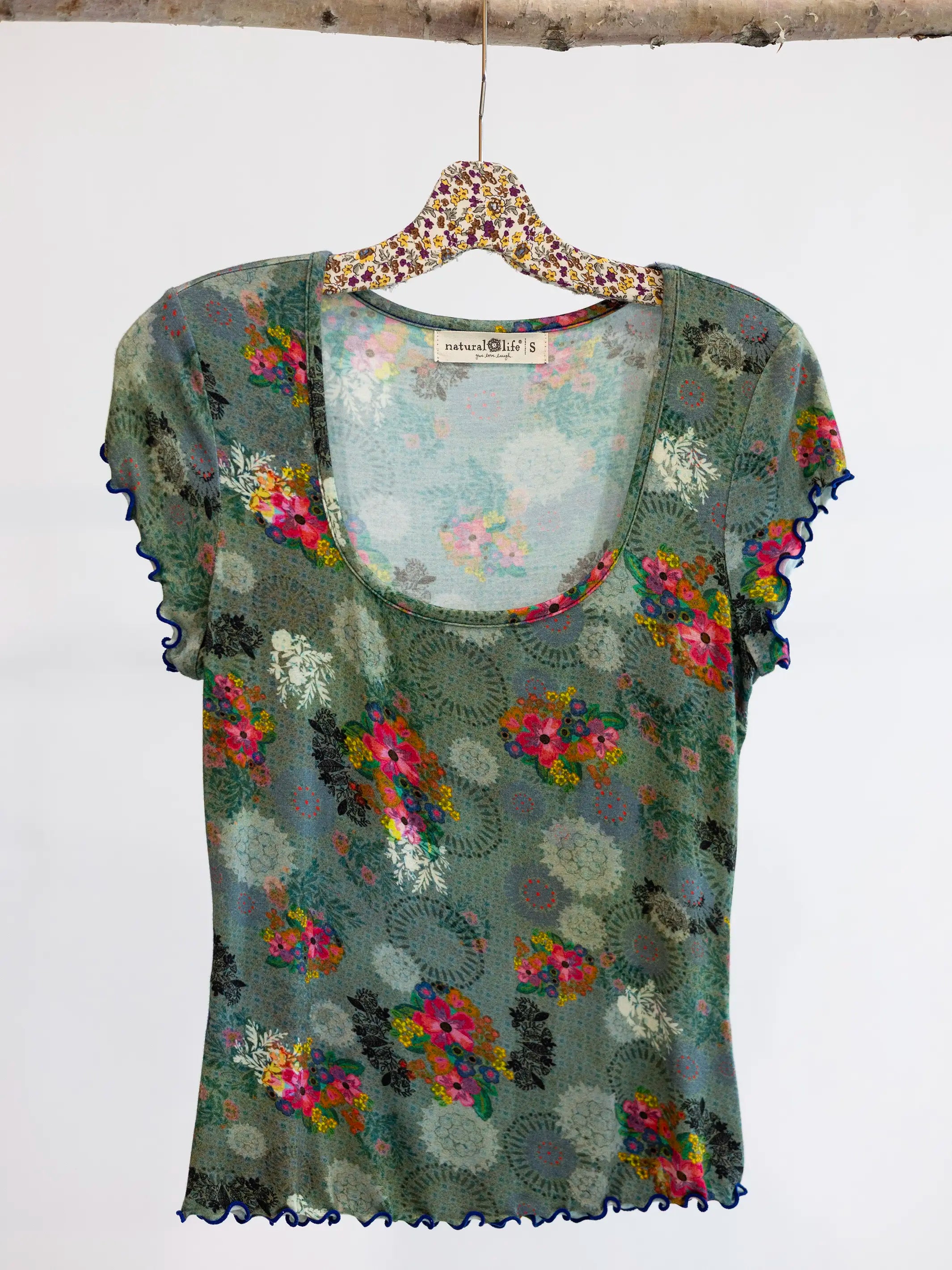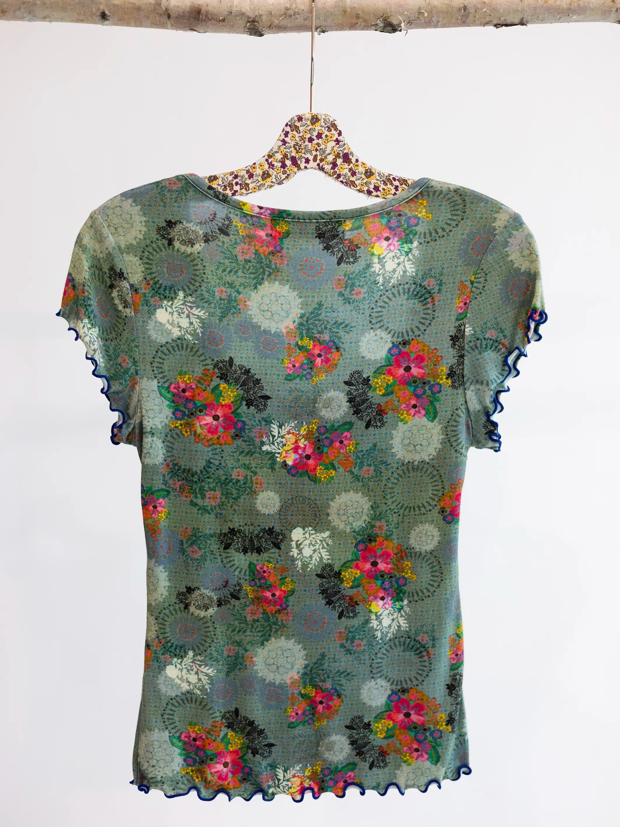 Lily Cotton Short Sleeve Tee Shirt - Slate Floral Blooms