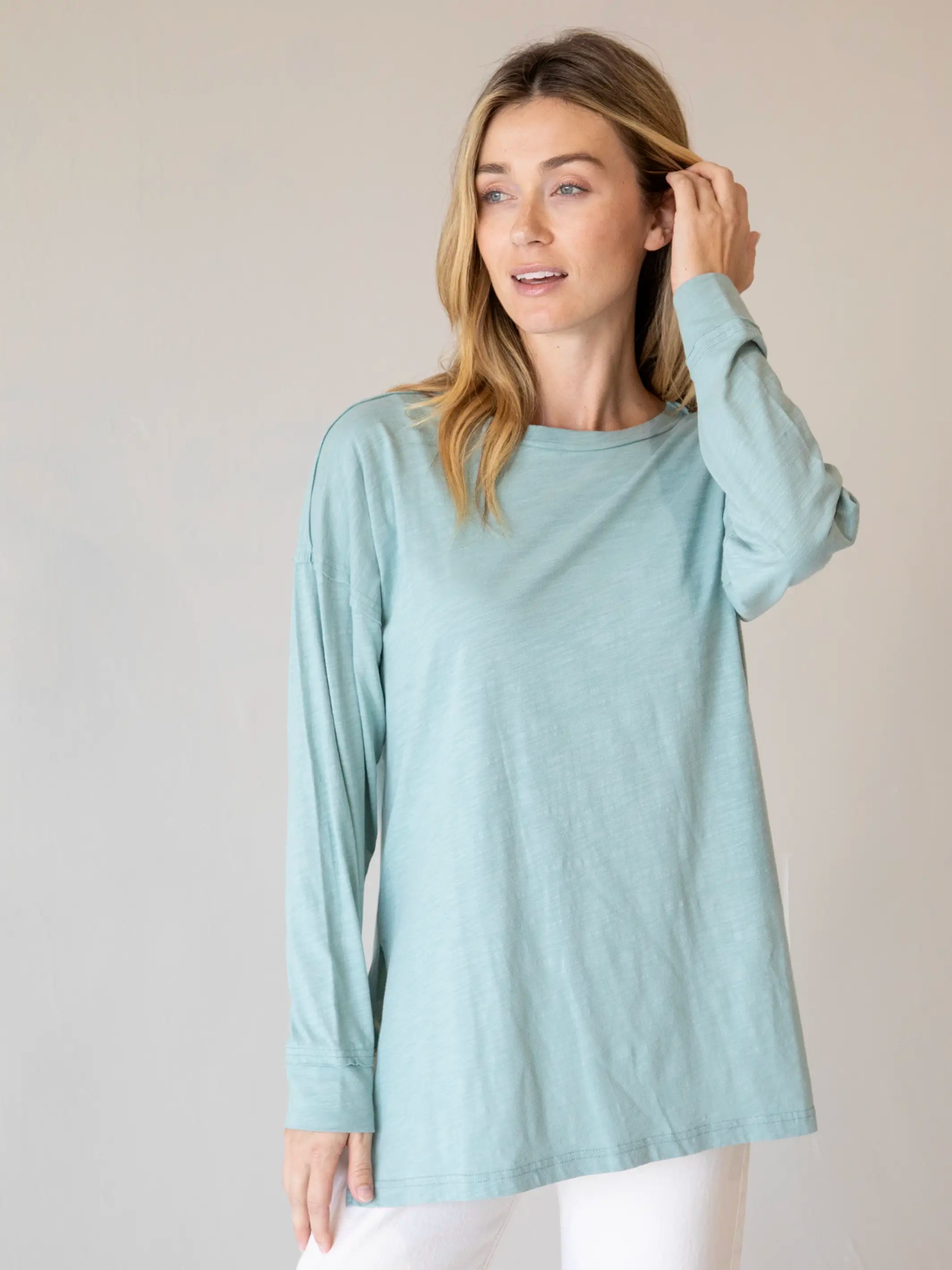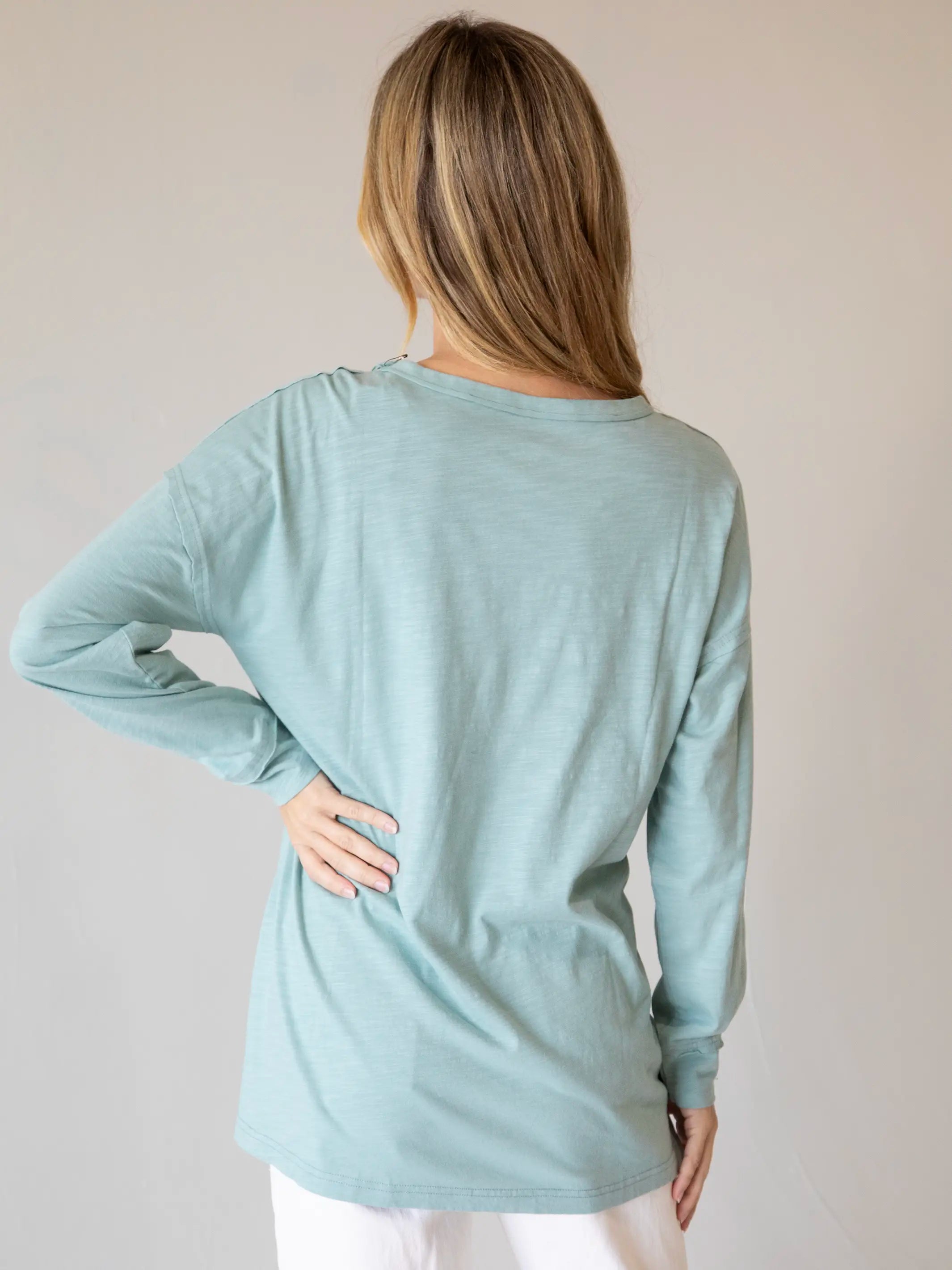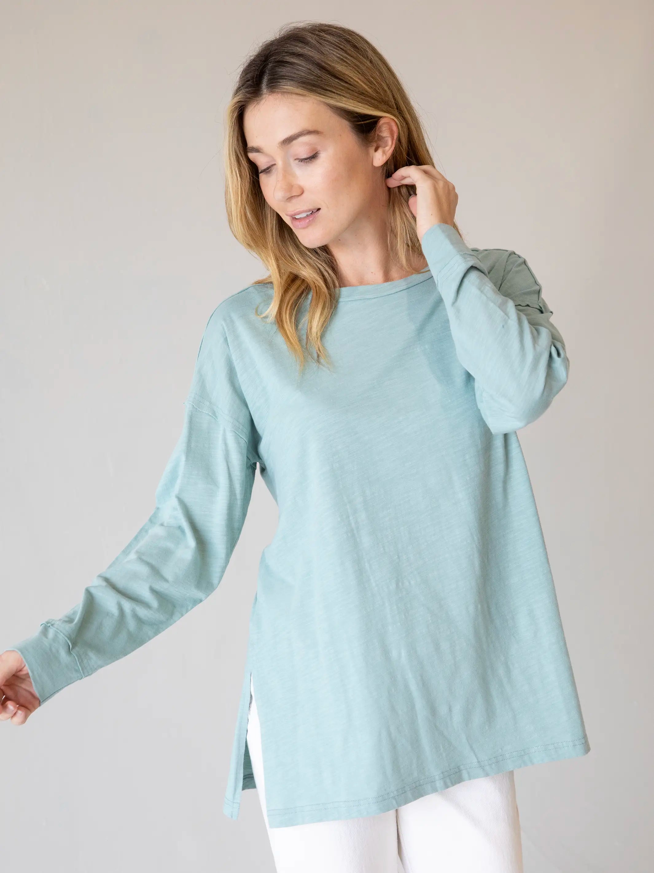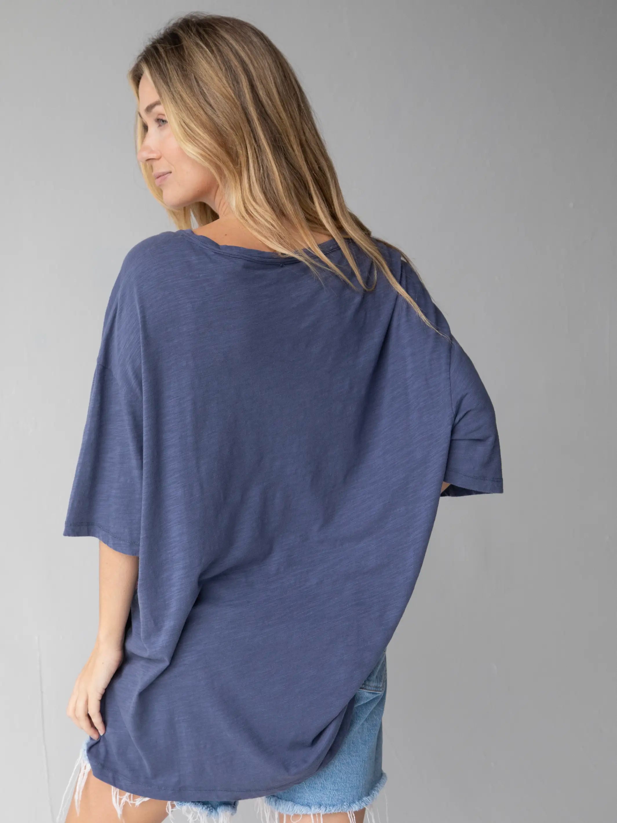 Remi Distressed Cotton Tee - Blue Thankful Grateful