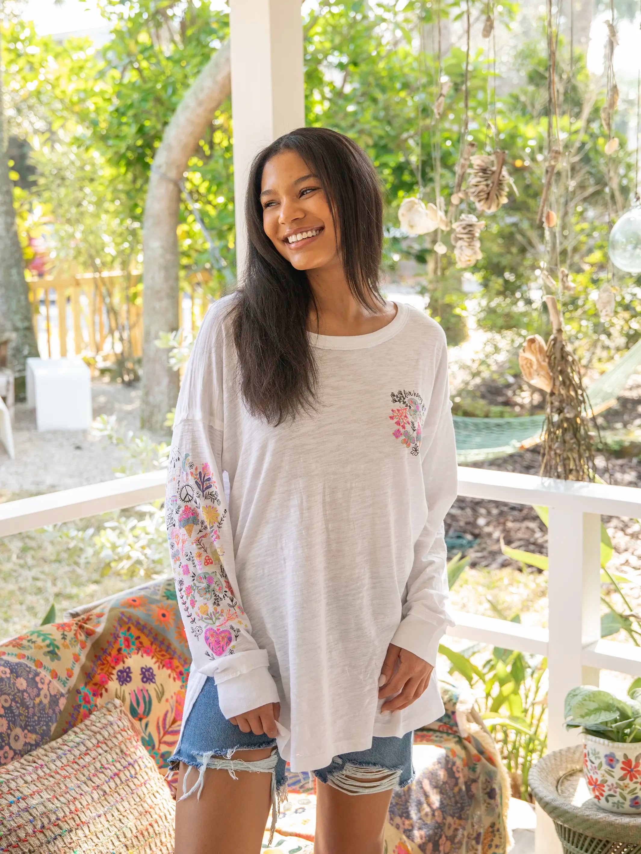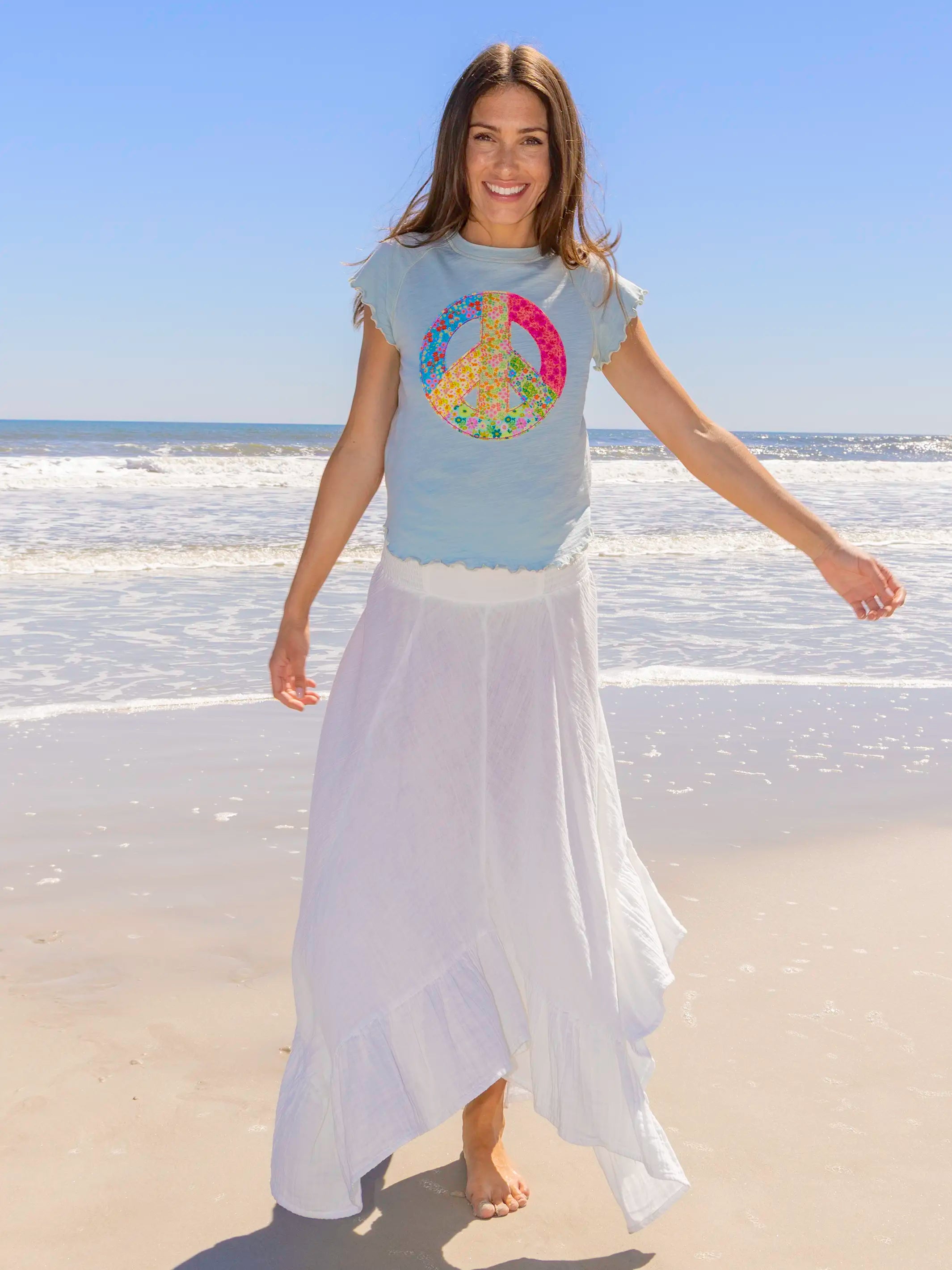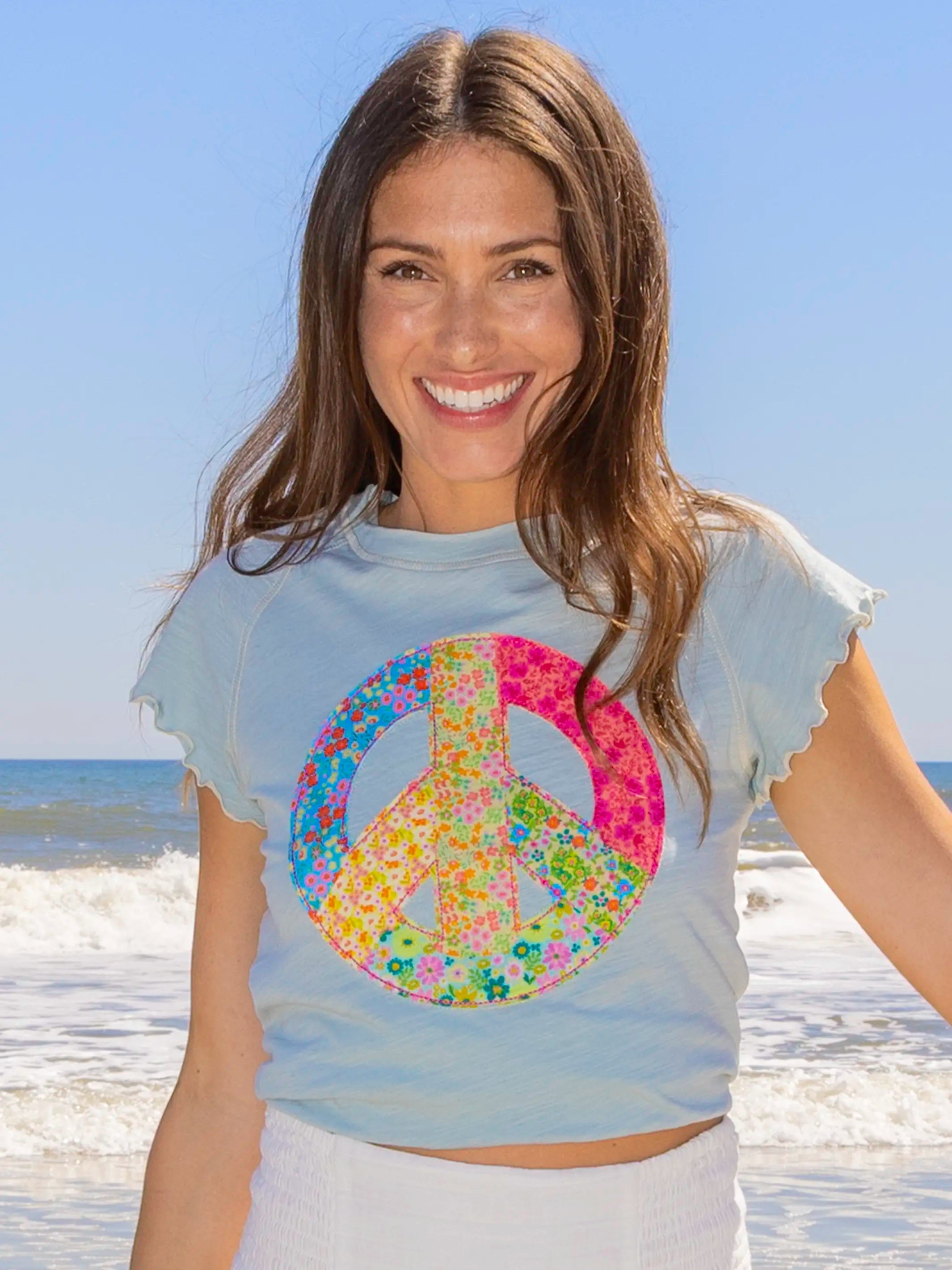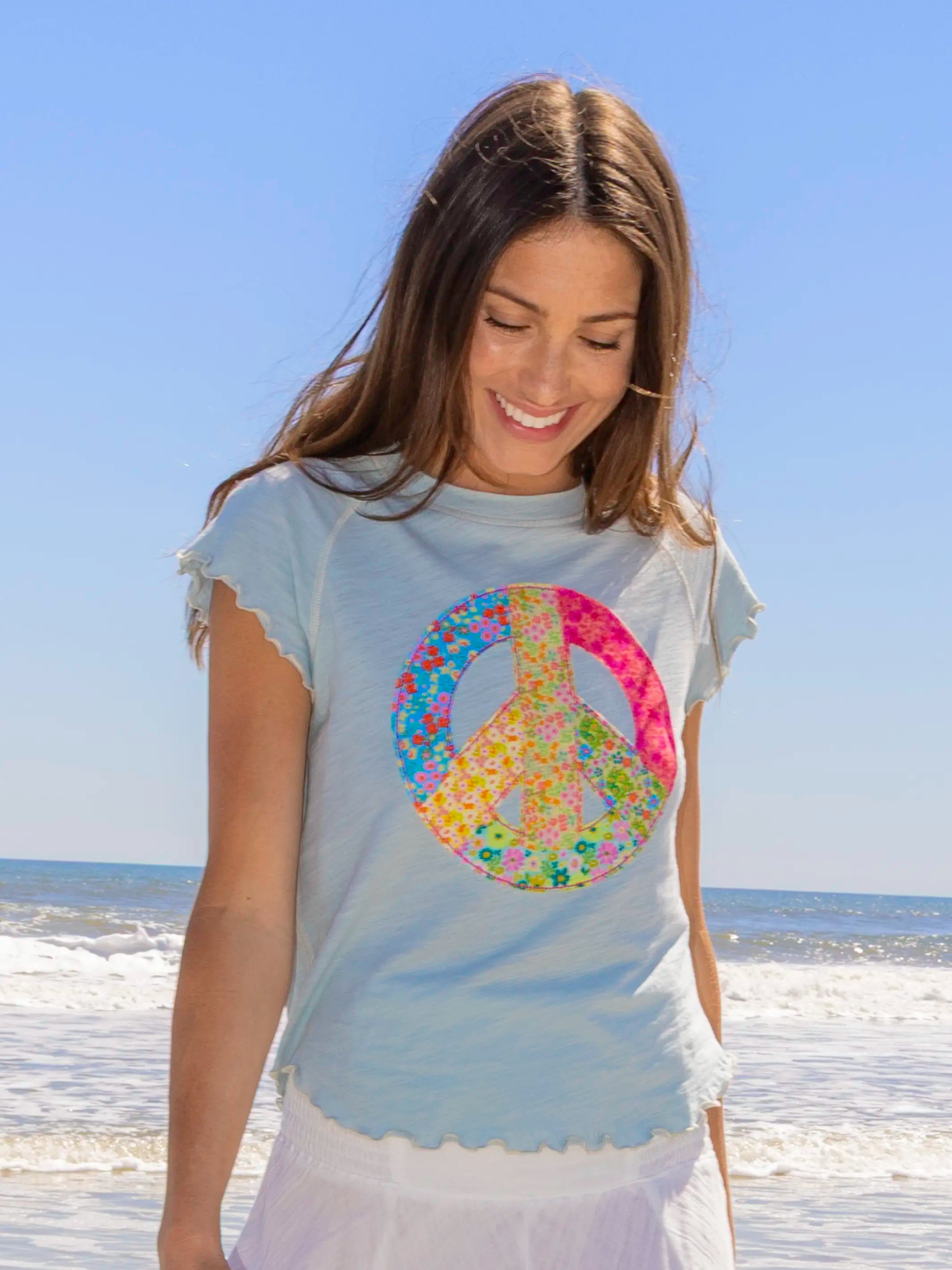 Lily Cotton Applique Tee Shirt - Bay Peace Sign