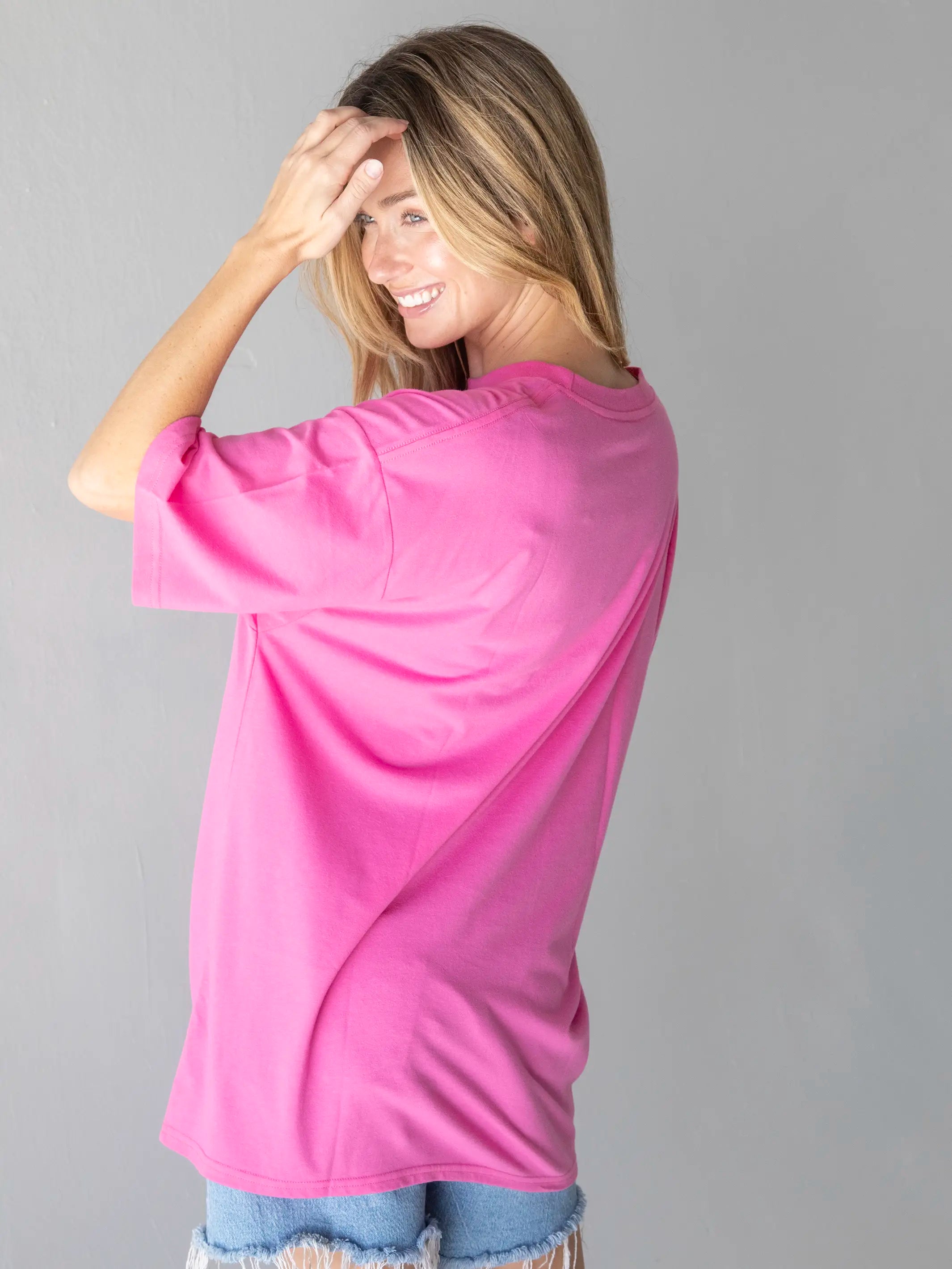 Oversized Cotton Applique Tee - Light Pink Peace Sign