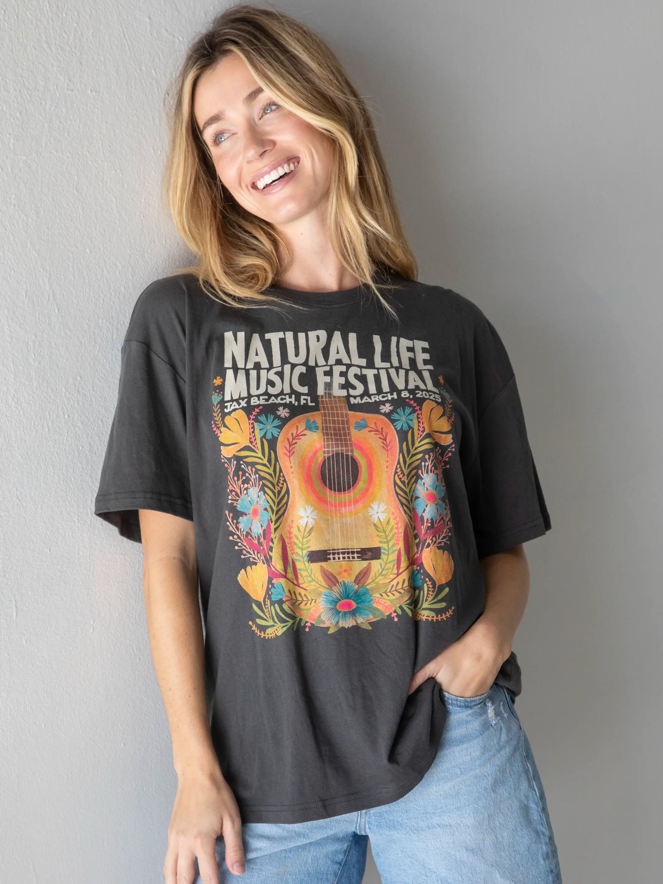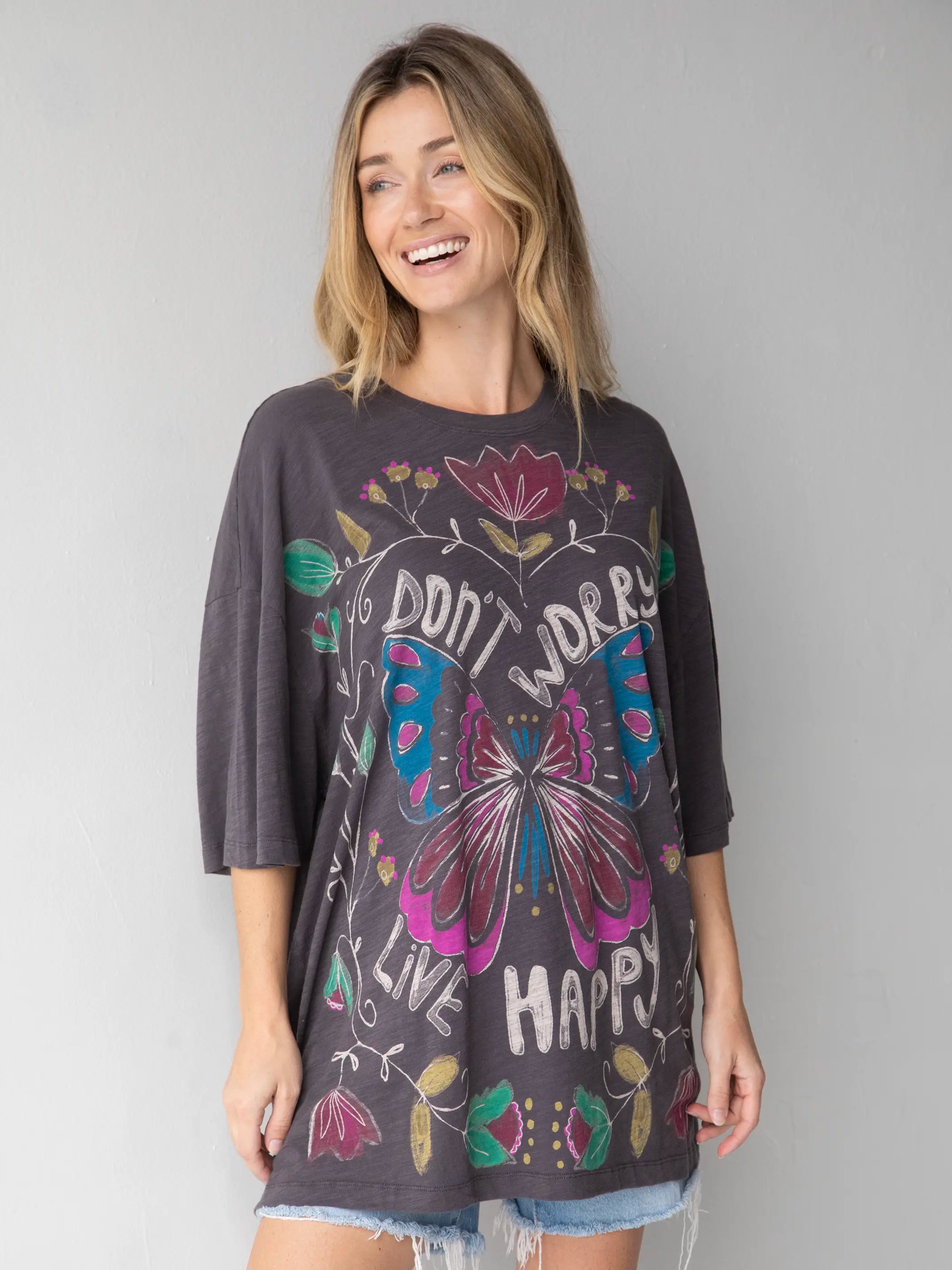 One Size Cotton Easy Tee - Don't Worry Live Happy Charcoal