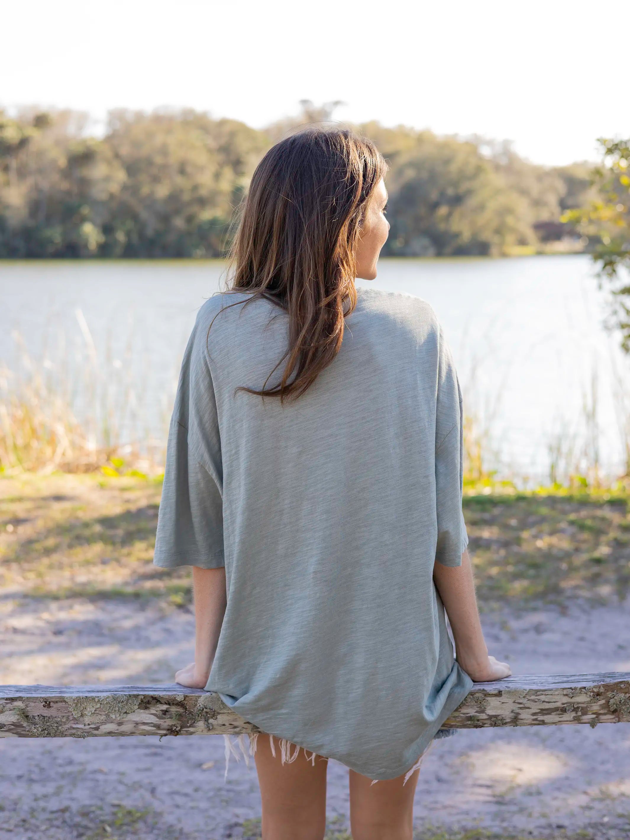 Ringer Oversized Tee Shirt - Charcoal Smiley