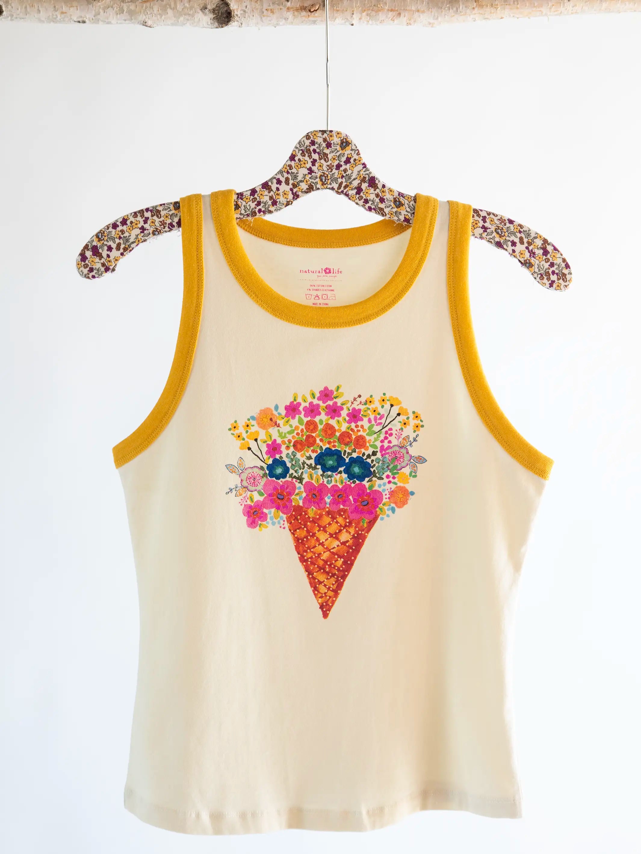 Simone Mesh Tee - Turquoise Pink Fan Floral