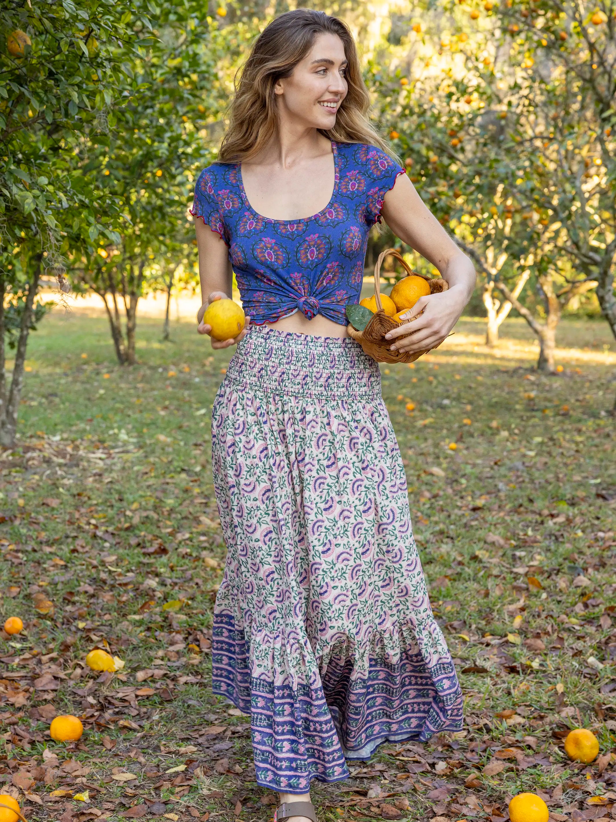 Lily Cotton Short Sleeve Tee Shirt - Blue Polka Dot Floral