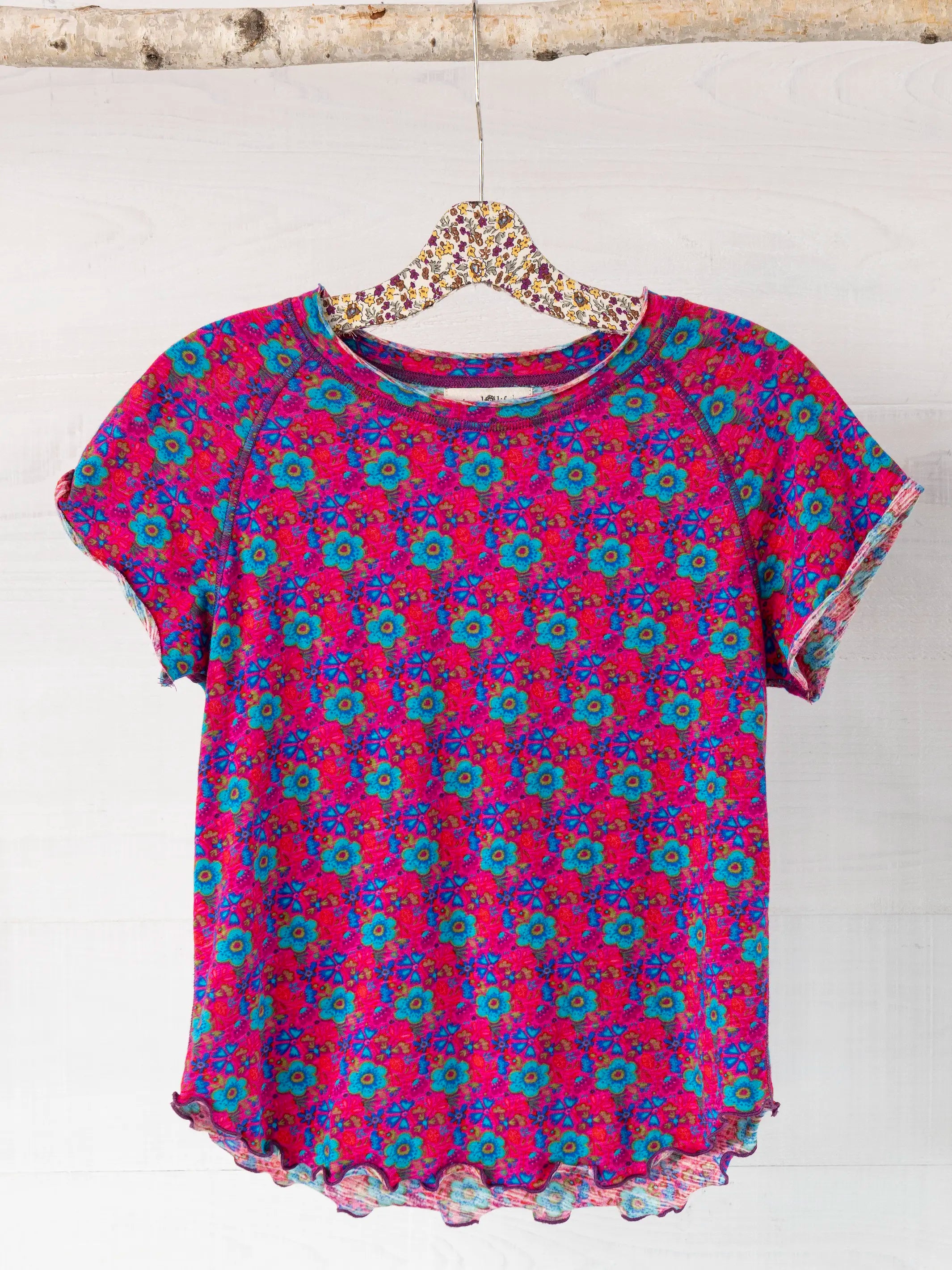 Lily Cotton Short Sleeve Tee Shirt - Pink Doodle Floral