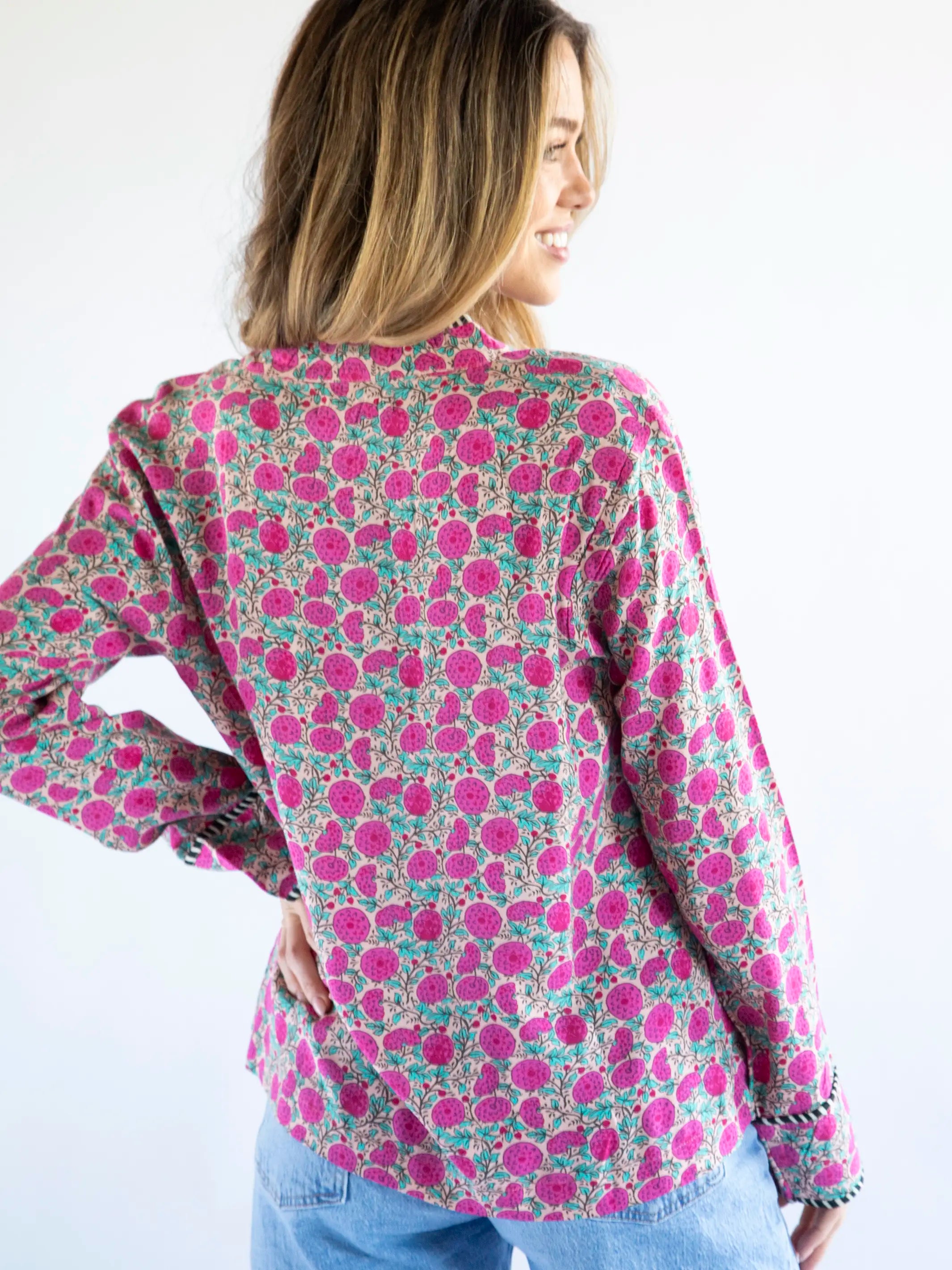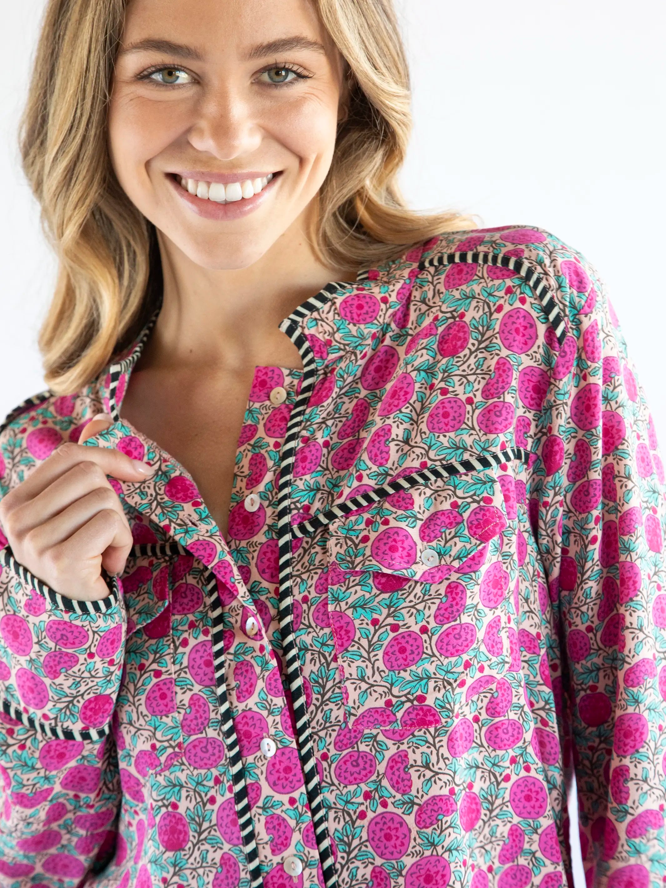Lily Cotton Long Sleeve Tee Shirt - Pink Red Floral
