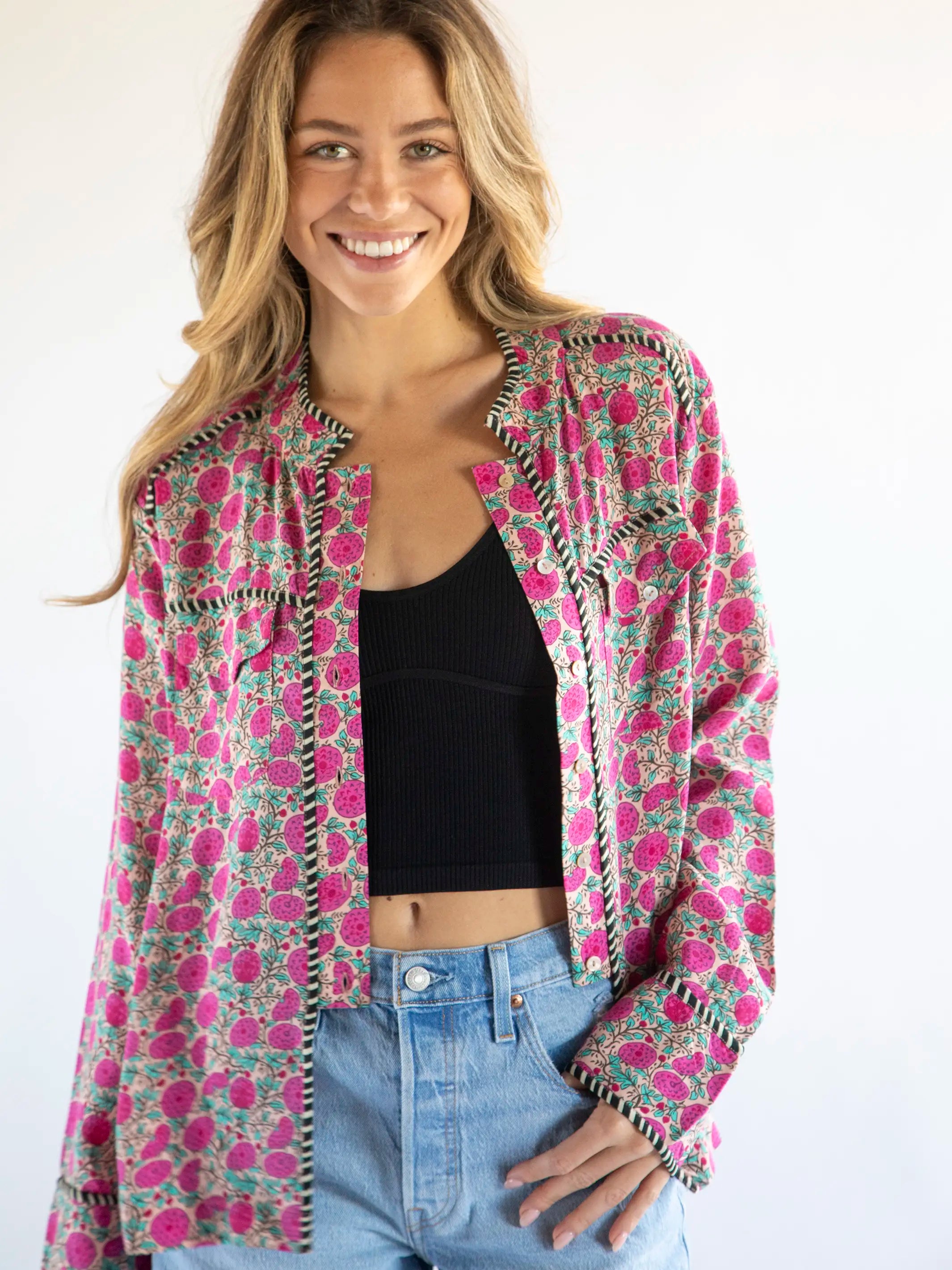 Aida Embroidered Thermal - Charcoal Folk Flowers