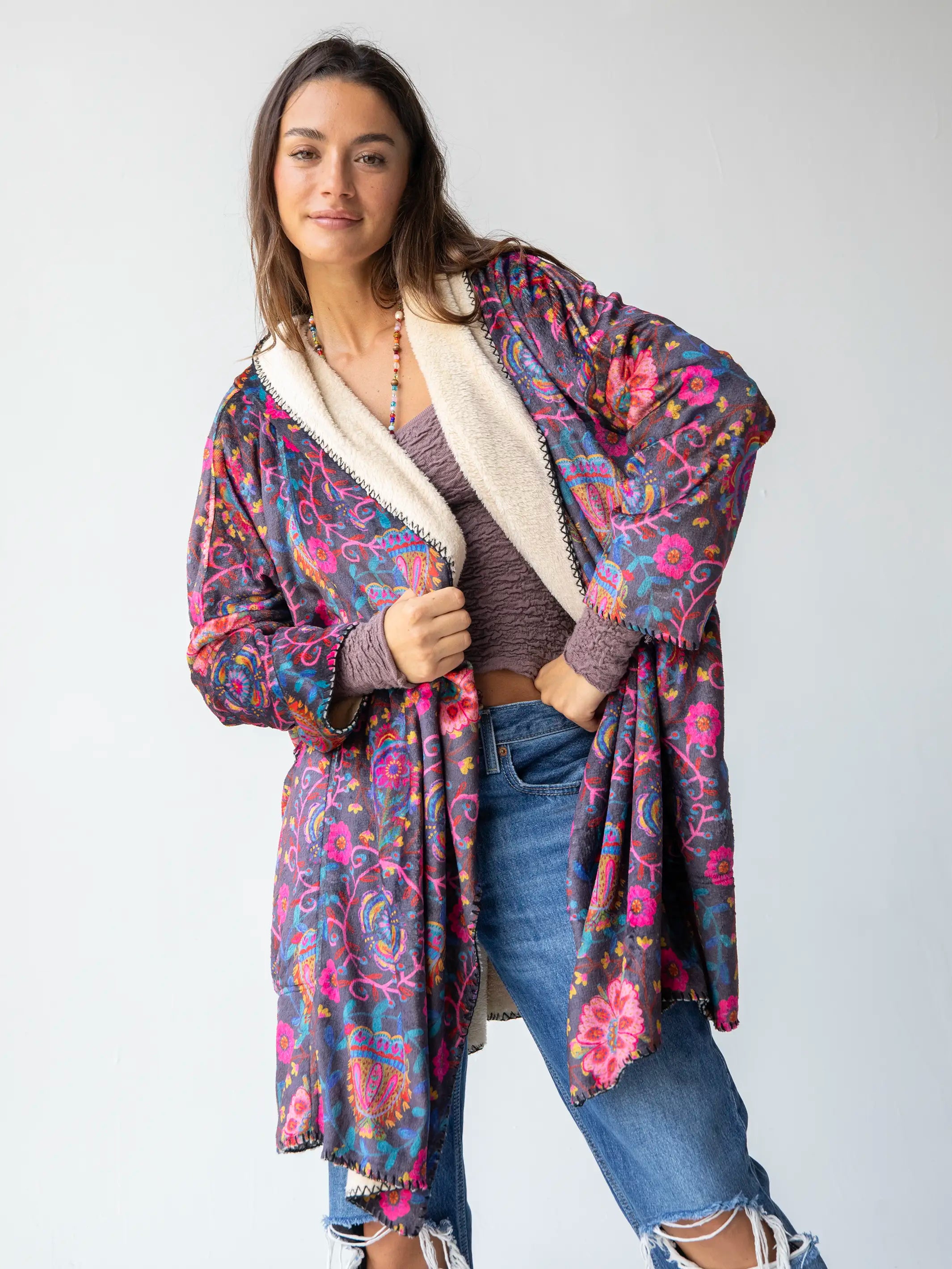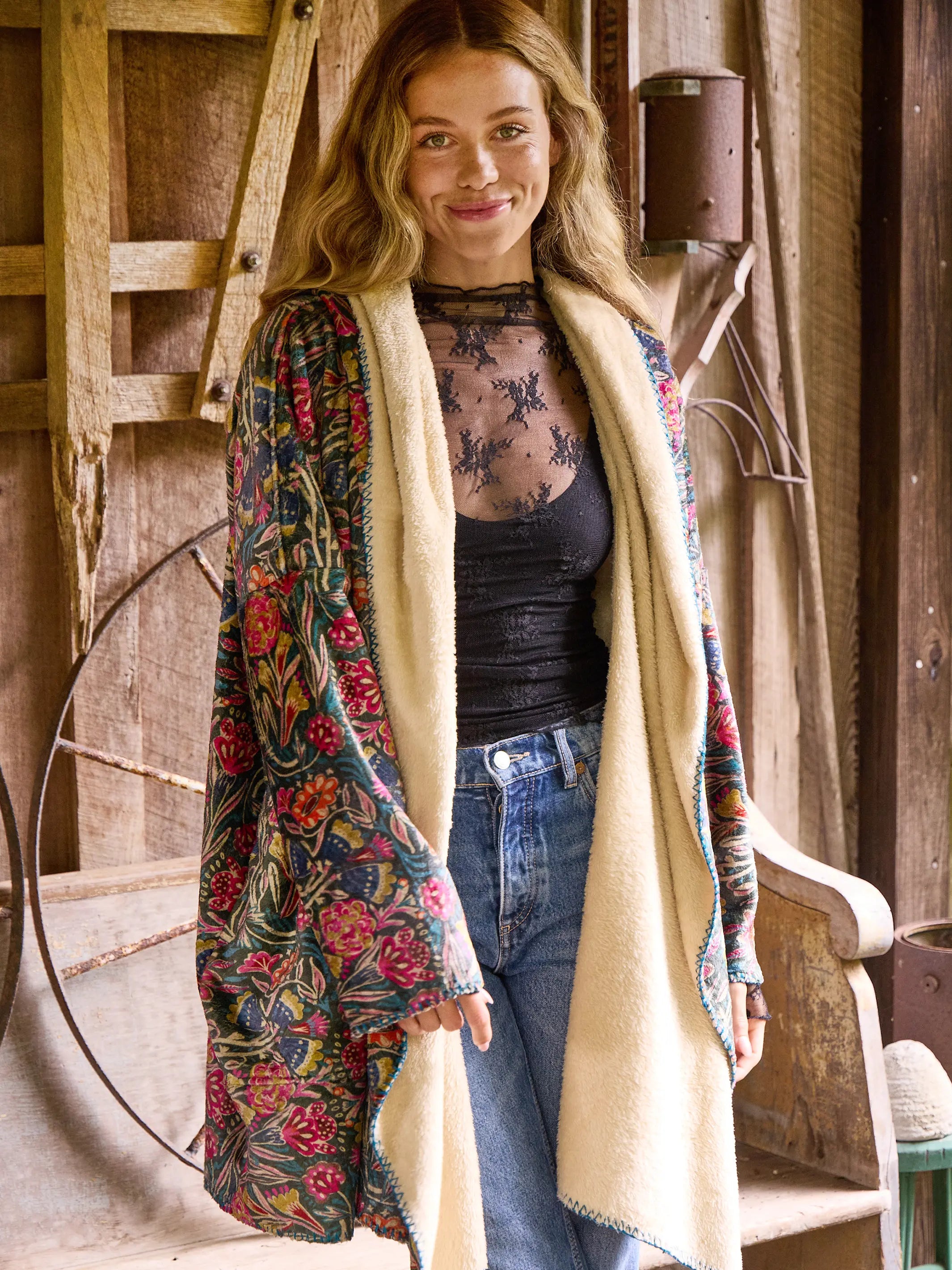 Long Cozy Blanket Kimono - Vintage Patchwork