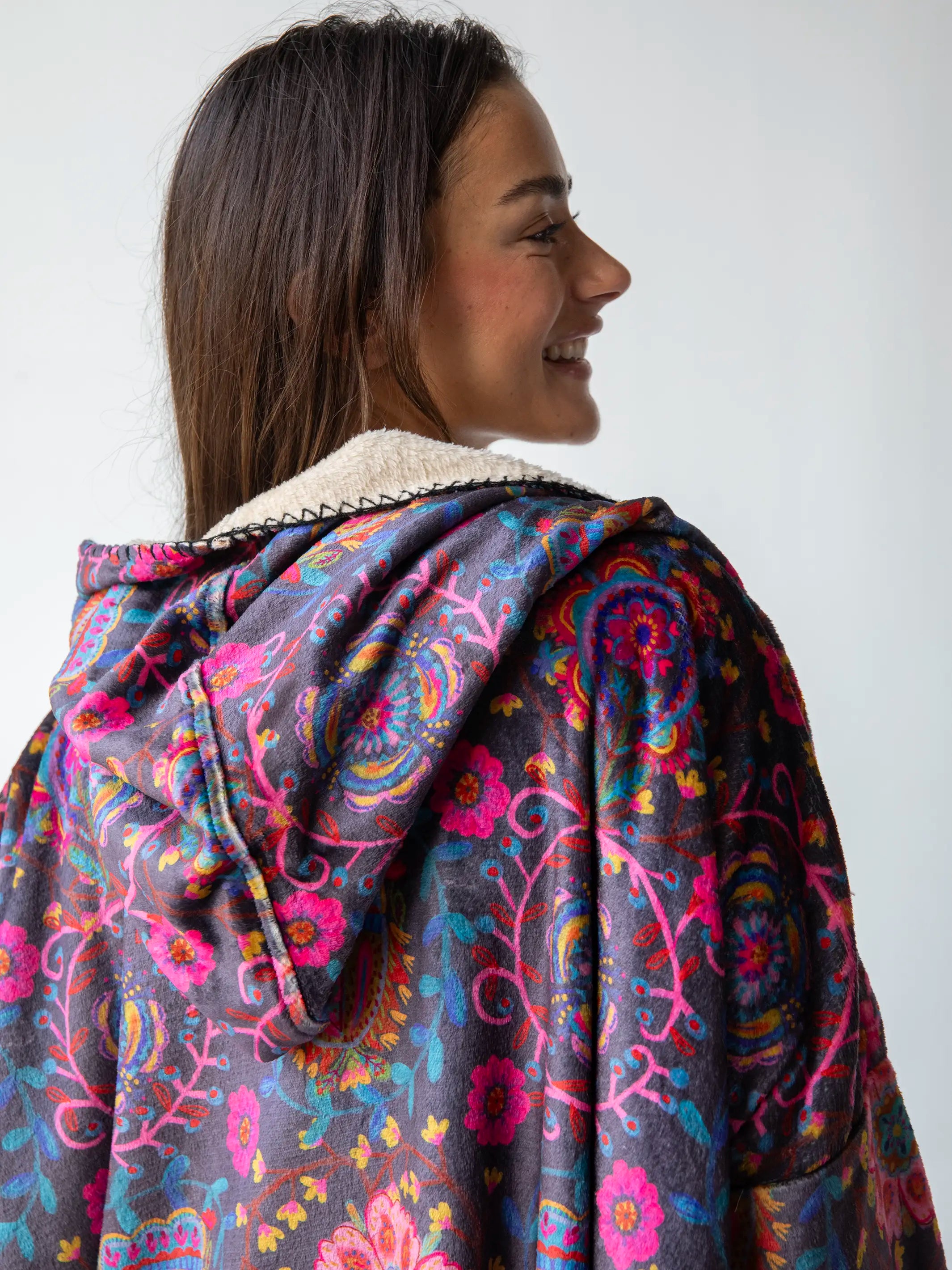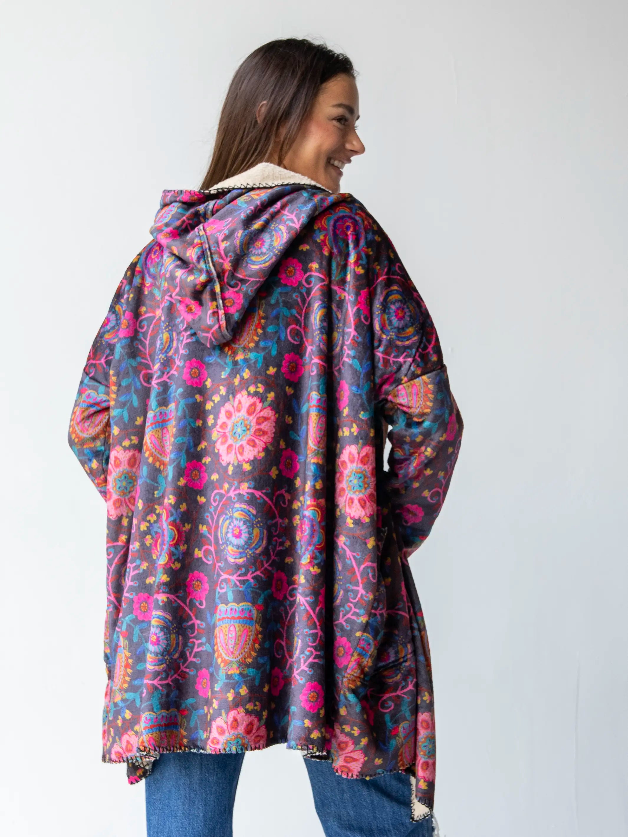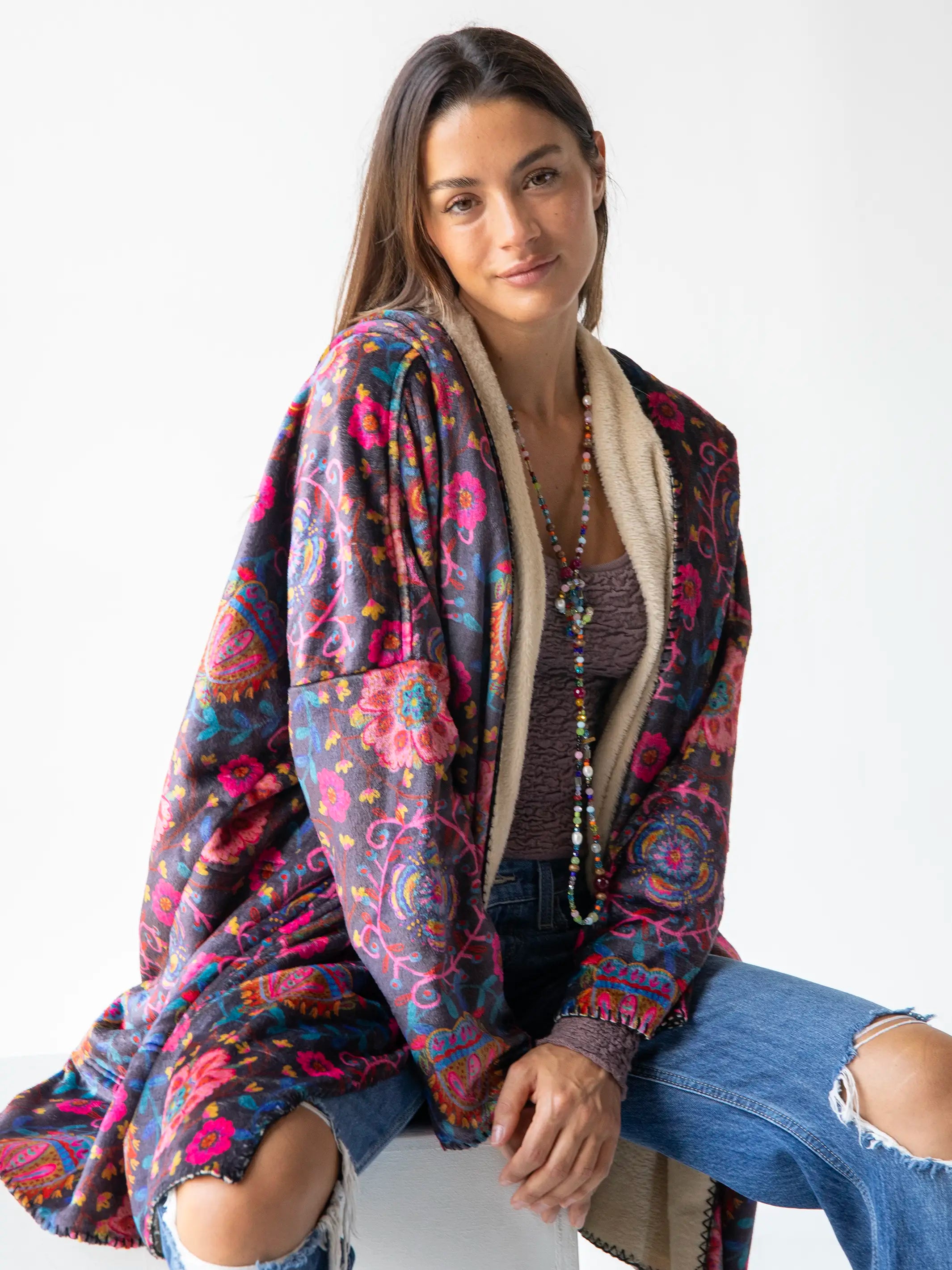 Cozy Blanket Kimono - Black Printed Folk Circles