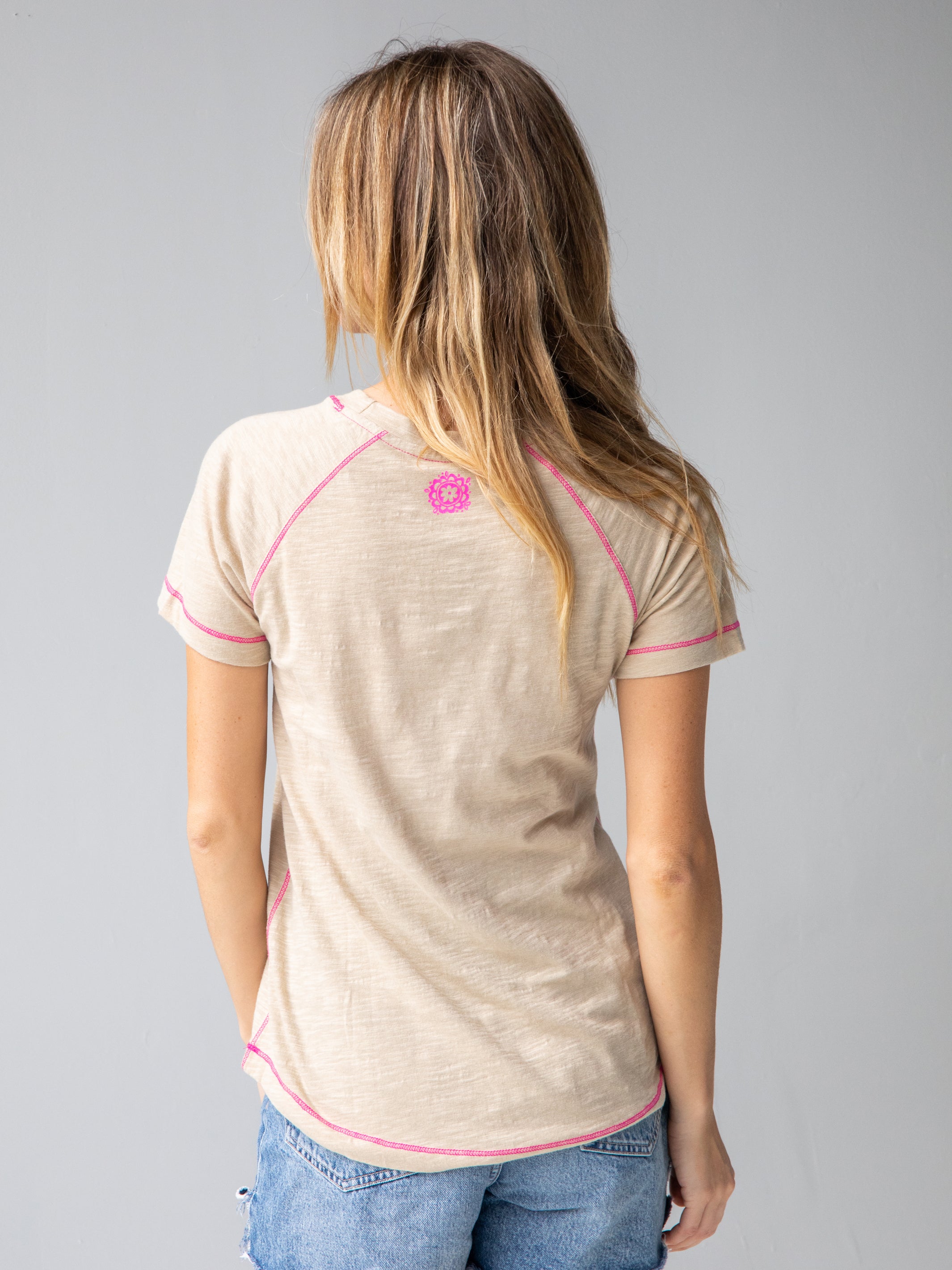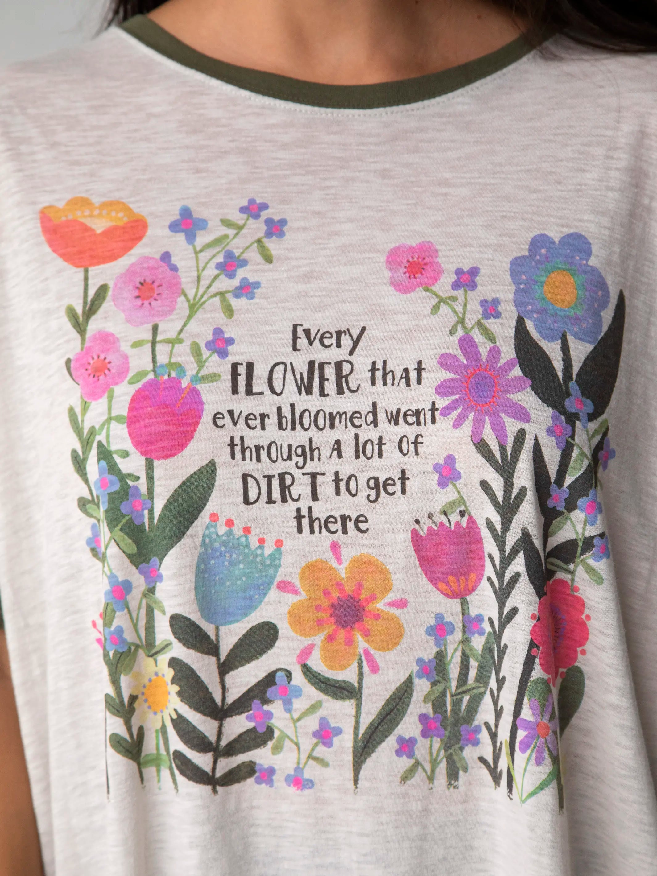 Boho Cotton Tee Shirt - Cream Folk Flower