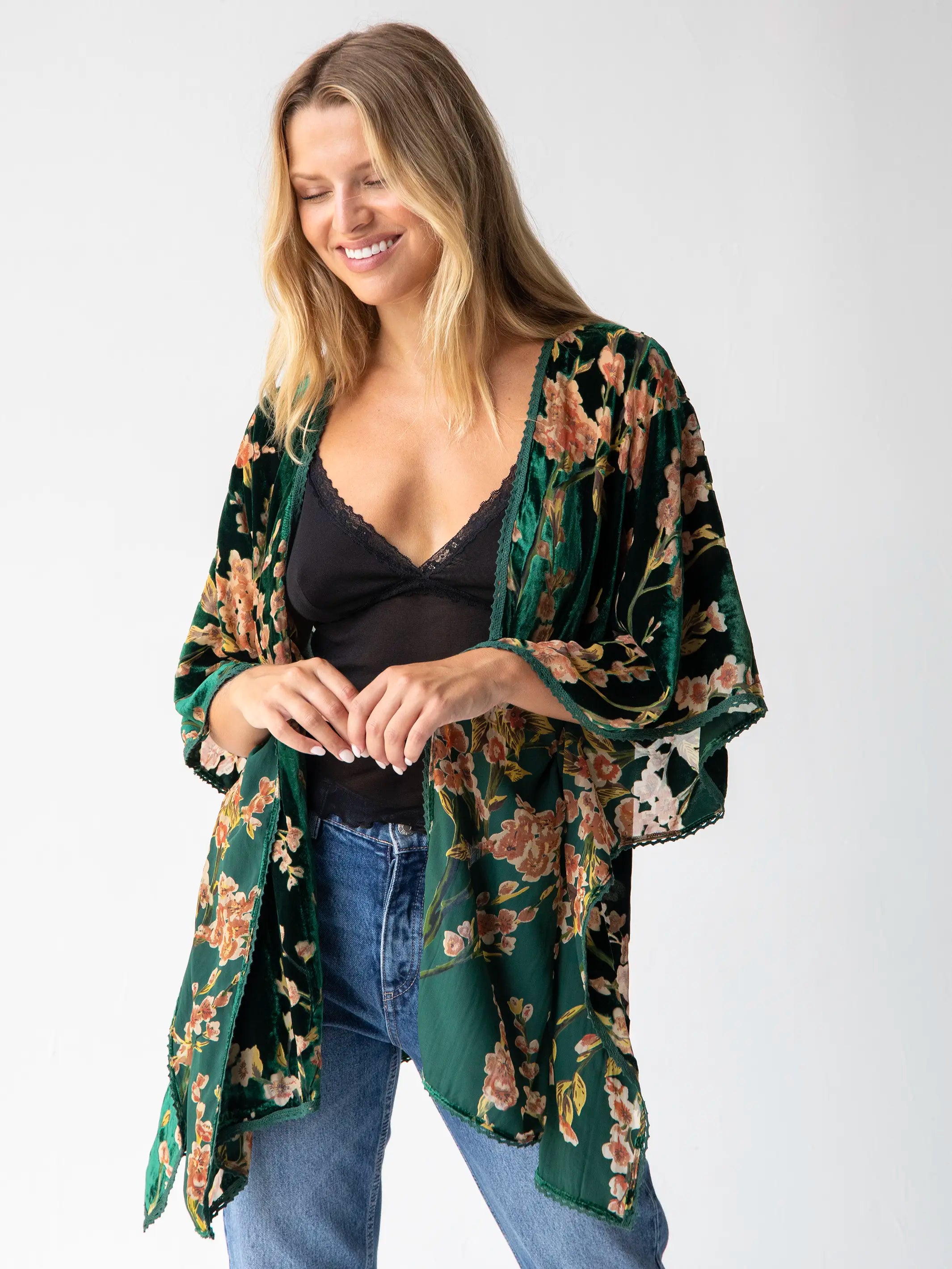 Sierra Mixed Print Kimono - Brown Teal Floral