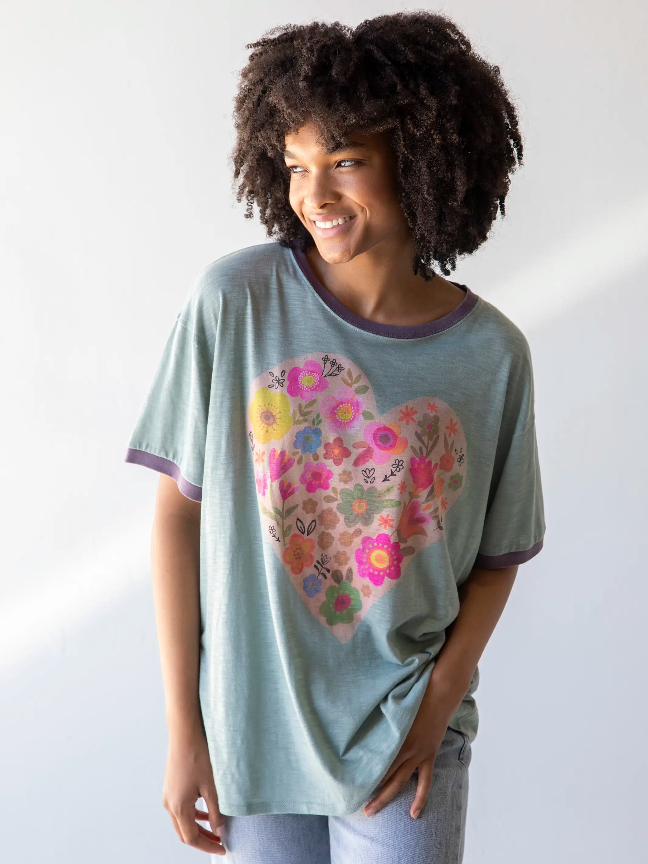 Frankie Cotton Boxy Tee Shirt - Charcoal Peace Sign